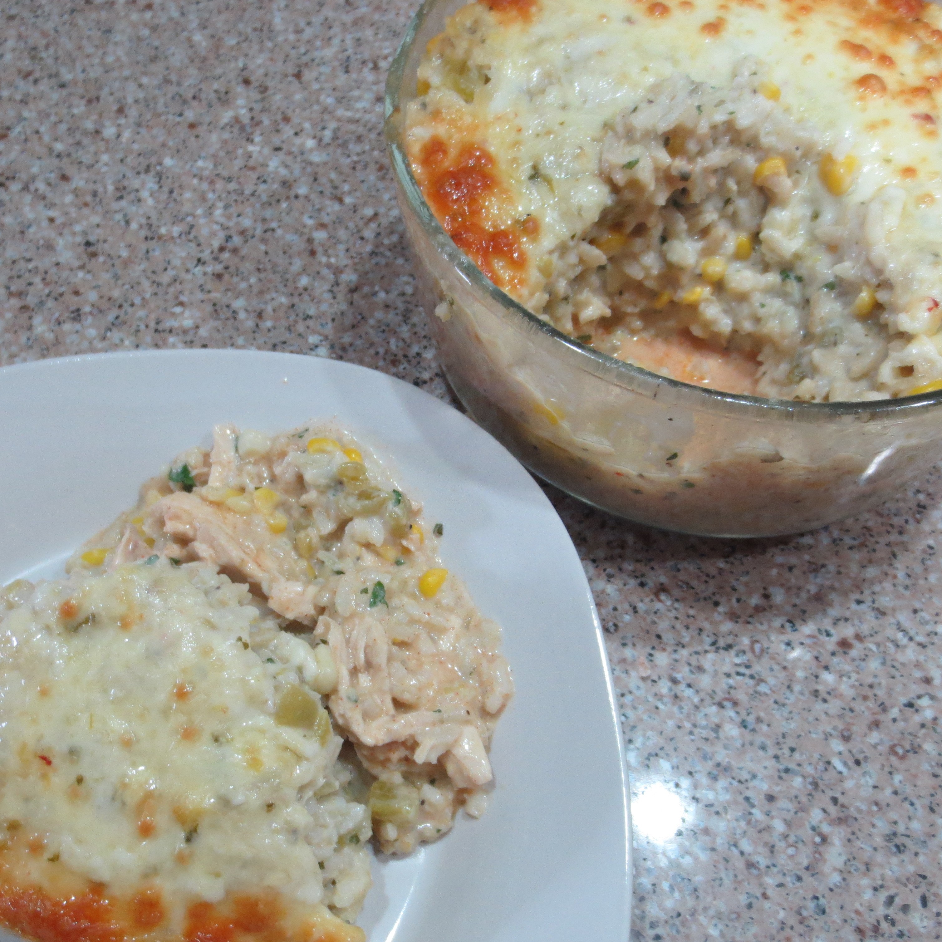 The highlight of our culinary week was my recreation of La Marina, a dish we frequently enjoy while dining out. The home version is quick to prepare and packs a lot of flavor for a reasonable number of calories. La Marina features a grilled chicken breast cutlet and shrimp in a light mushroom cheese sauce. As at the restaurant, I served it with grilled veggies and Salsa Rice.