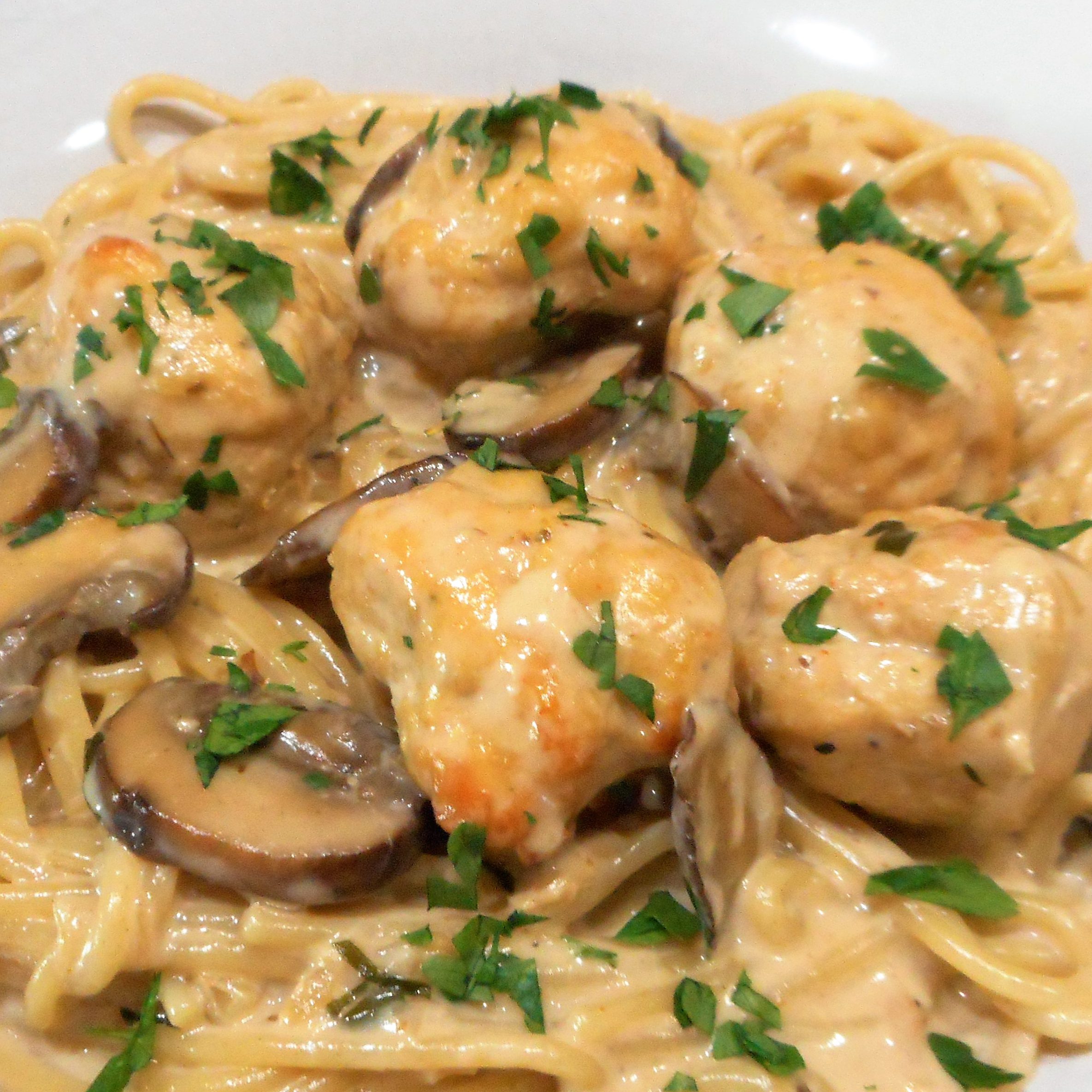 Sunday’s dinner was White Spaghetti and Meatballs. I choose to use boneless breast meat, but thighs would work as well, if that’s your preference. This ground chicken recipe is rather anemic in appearance, but it packs a lot of flavor, and a little chicken goes a long way. One recipe makes six servings, but there are only two of us. Leftovers?