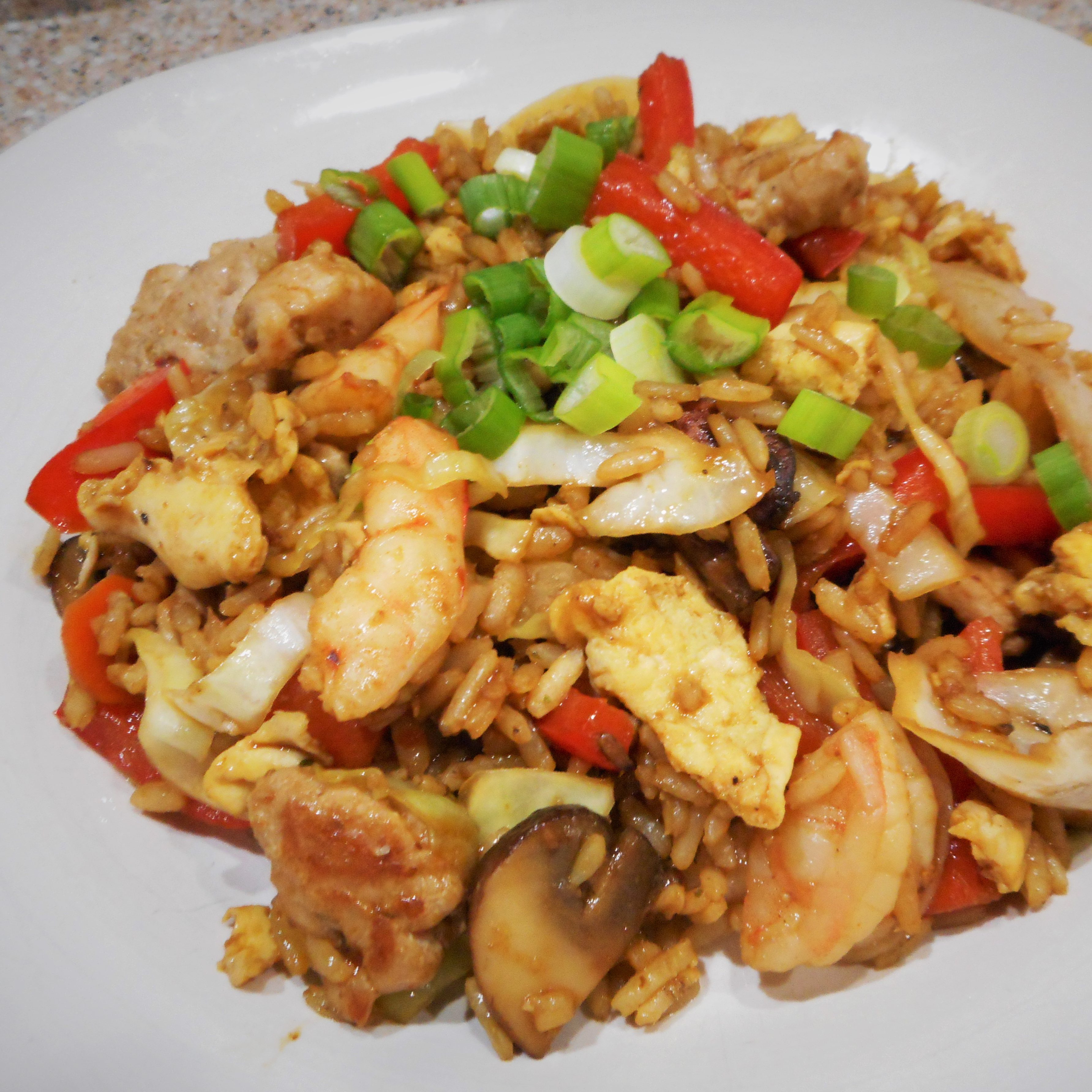 Tuesday I needed to be thrifty. I had recently trimmed up some pork tenderloins and saved all those little bits and pieces of meat that were too small to make a real meal but I couldn’t bear to throw away. Pork Fried Rice was the perfect recipe for those little pieces of pork, and guess what? I repurposed the leftover shrimp scampi at the same time! I drained off the sauce and chopped the shrimp into the rice along with the pork. No leftovers were left!