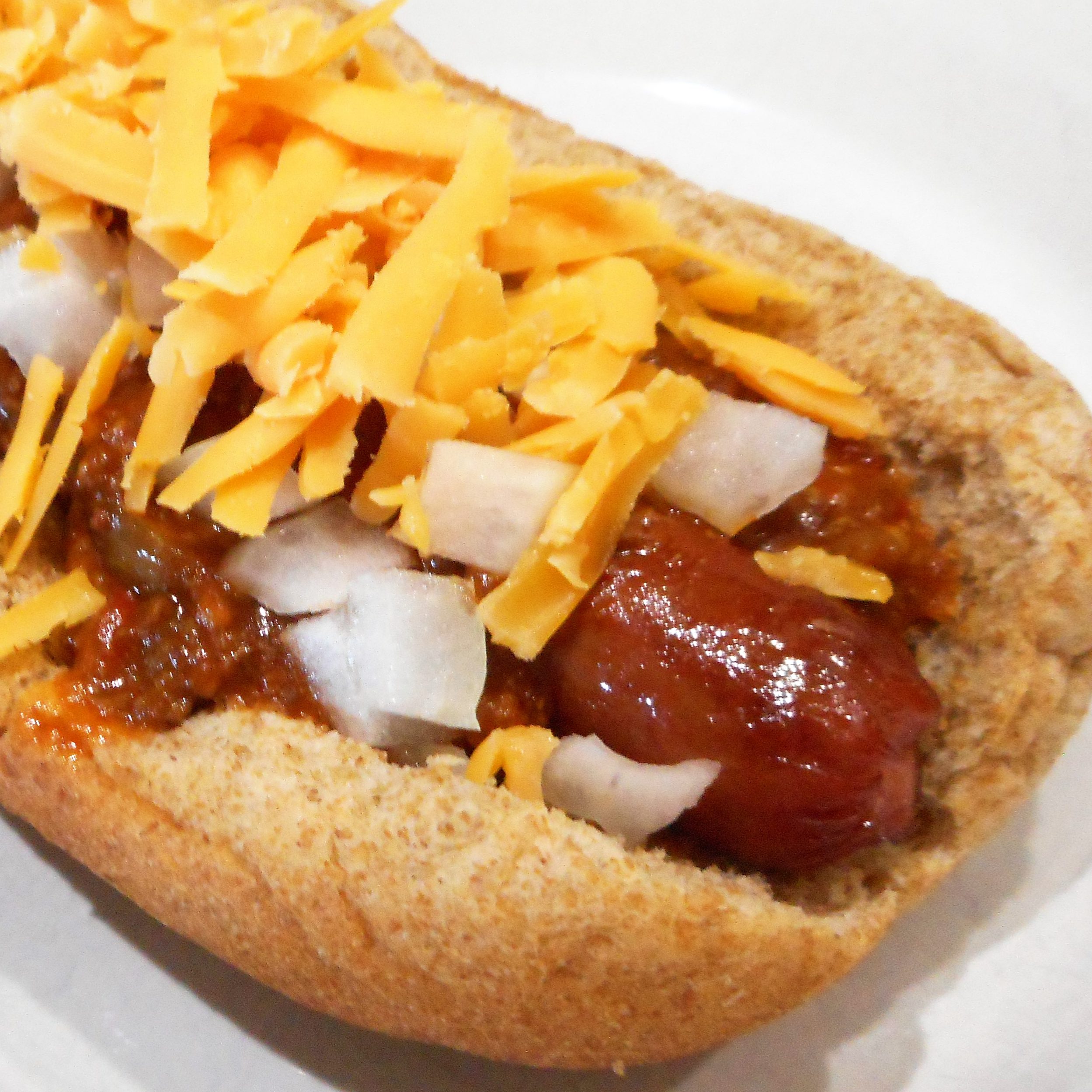 It’s probably a good thing that Wednesday’s chicken was relatively healthy, because Thursday we tipped the scale the other way for sure! We went to Kelton’s last fall baseball game and that required a quick and early dinner of our own fast food. Chili Dogs were the simple solution. We like to dress our dogs up with a little chopped onion and grated cheese, followed by a breath mint chaser.