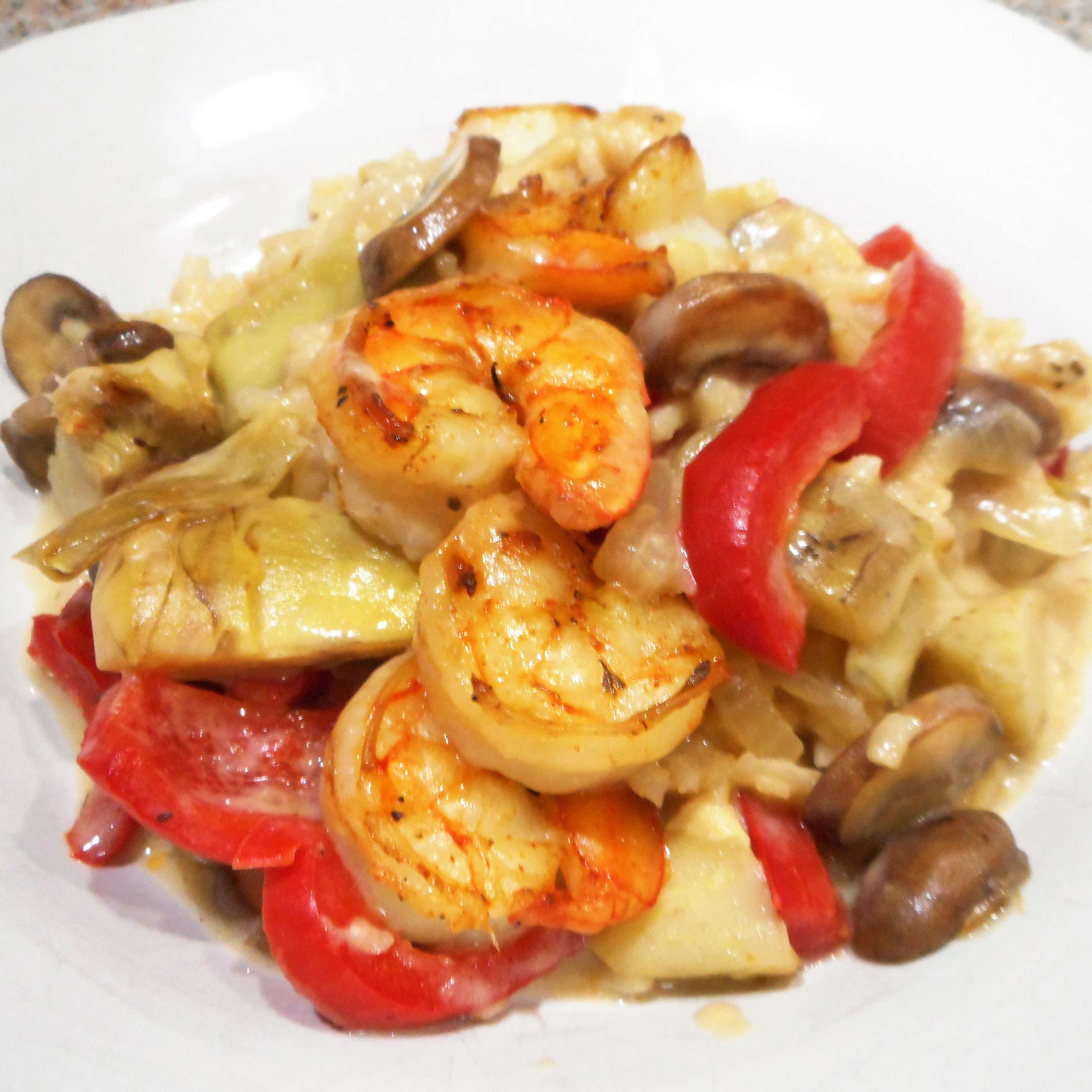 I’m still missing the beach, and Friday’s supper just couldn’t compete with our dinners there. Artichoke, Shrimp, and Mushroom Casserole doesn’t even pretend to be beach food, so it was perfect for this week. Not every store carries the frozen artichoke hearts that are essential for this recipe. I wouldn’t want to try to start with whole artichokes, so if you want to try this recipe be sure to look for the frozen artichokes first. This recipe calls for a quarter cup of dry sherry and Michael though that flavor was too pronounced. I must say I agree, although I don’t recall having gotten the same impression the last time I prepared this recipe. Next time I may reduce the amount of sherry or just use my regular white wine instead. We’ll see. That’s the thing about recipes…they’re just a guide line. Cook the way you like and make each recipe your own.