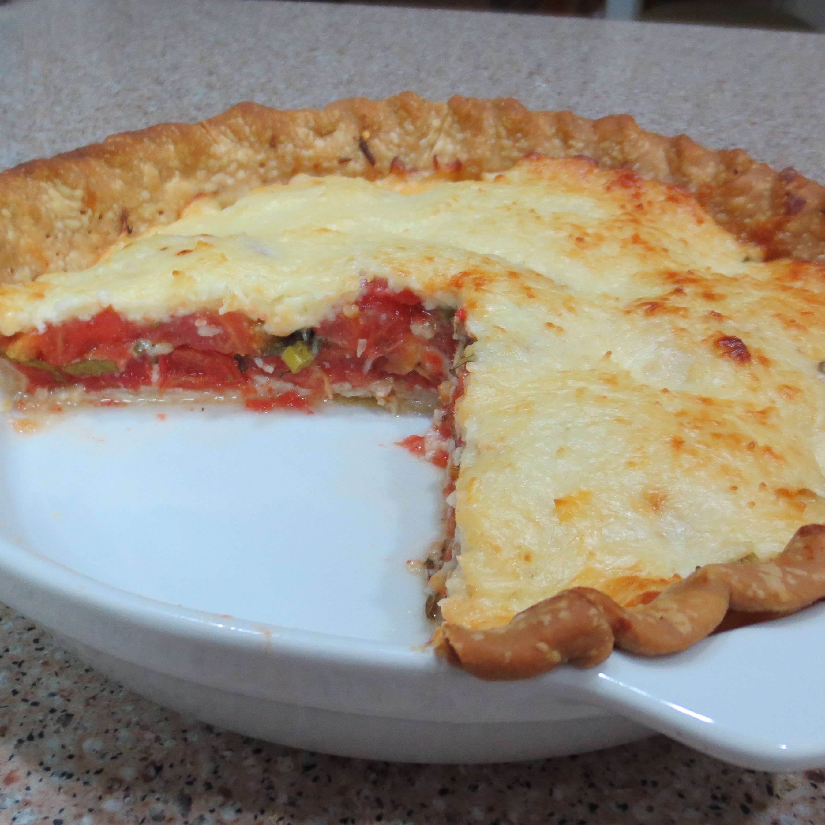 Our tomatoes are also beginning to come in as well. Meatless Monday’s dinner was Italian Tomato Pie. Tomato pie is one of those dishes that is only good with summer tomatoes. Store bought just won’t do.