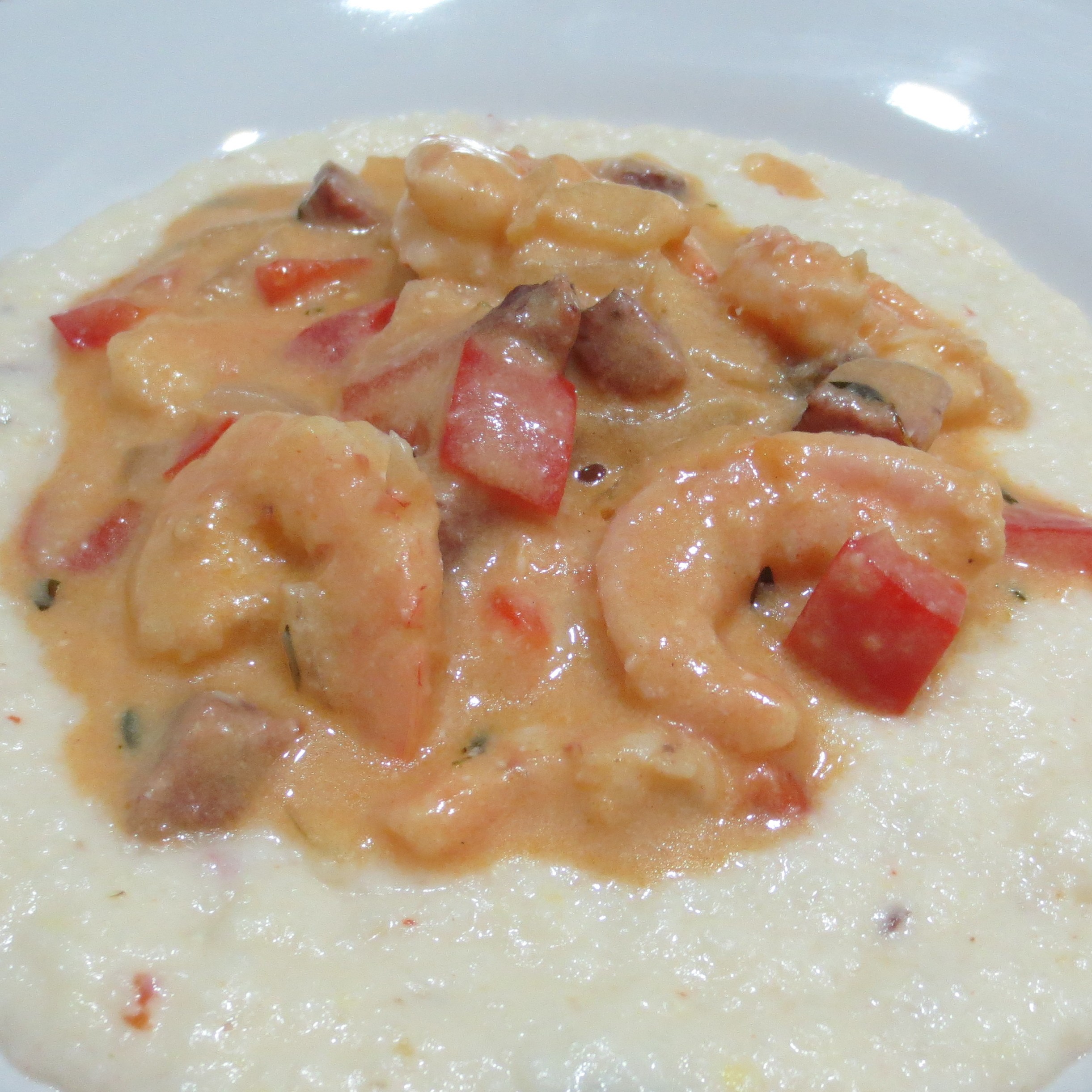 Aaron, Jen, and Xander arrived on Friday. After snacking on our usual Spicy Sausage Balls and a few other tidbits, Fishy Friday was observed with Saucy Shrimp with Whole Corn Grits. I had to cut back on the spices a bit to satisfy the palate of a two year old, but the shrimp and grits were still good.