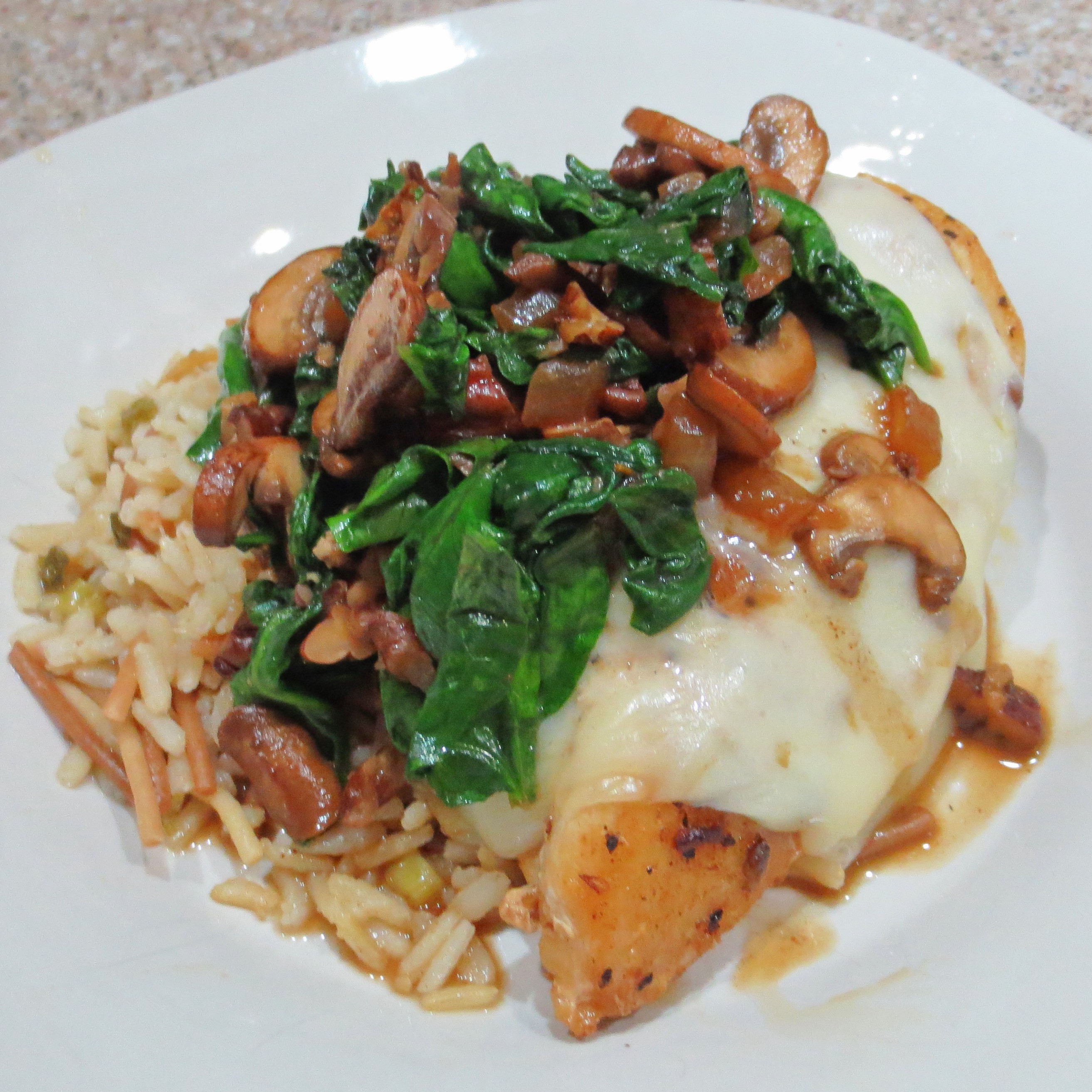 Sometimes necessity is the mother of invention. Thursday night we were getting ready to grill Spinach and Mushroom Smothered Chicken when the skies opened up and the rain came pouring down. It was getting late and all the ingredients were already prepped. Spinach and Mushroom Braised Chicken was born. I don’t know which version I like better. The grilled version has that wonderful smoky charcoal flavor, and the braised version is a little moister with the braising liquid. It’s a hard choice.