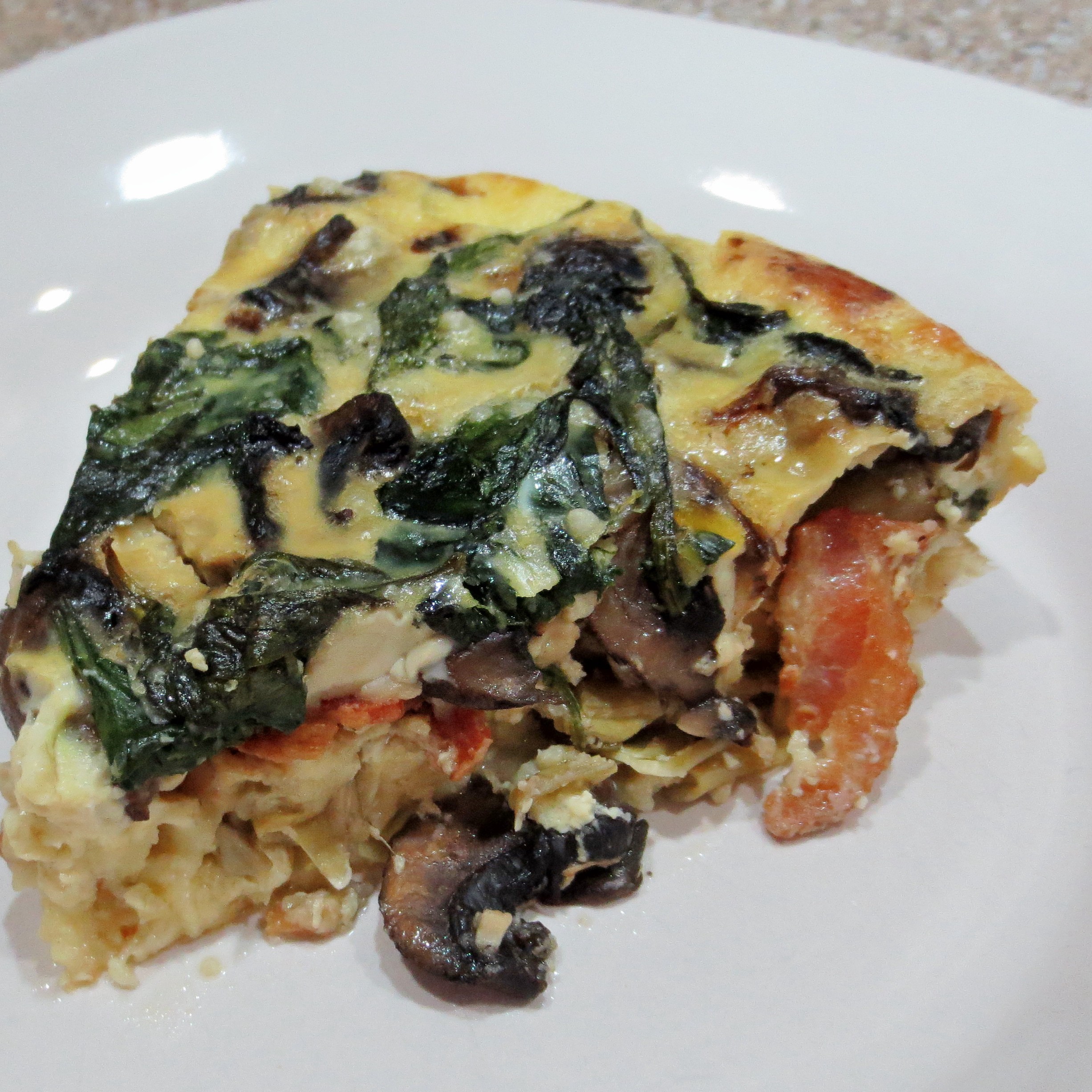 Meatless Monday was almost meatless with Sneaky Quiche. I did sneak in a little bacon, but this dish is called “sneaky” beacause it doesn’t call for a conventional pie crust but sneaks its’ own in. It’s a delicious dish.