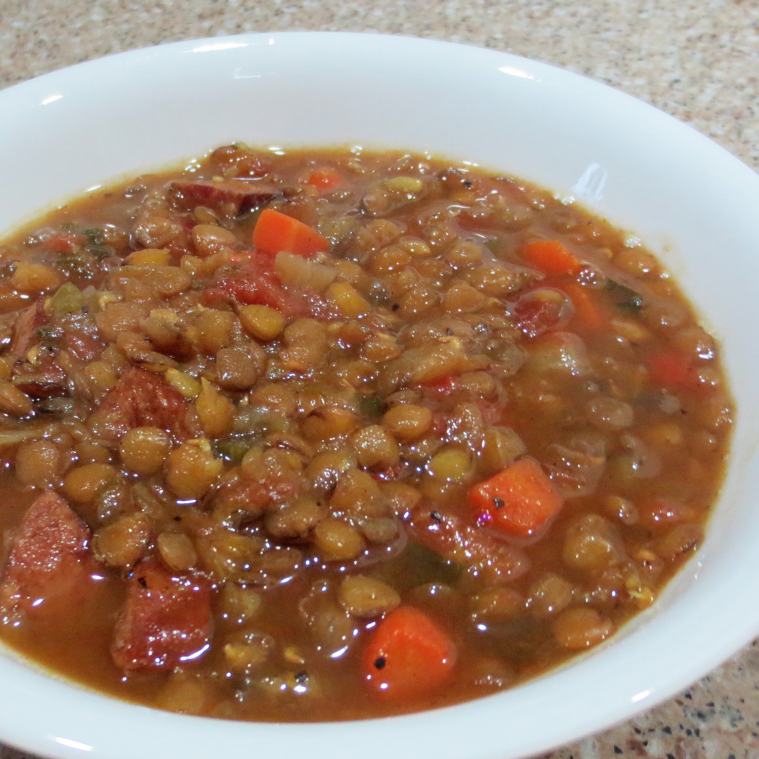 I try to keep up with my freezer inventory, but sometimes I miss doing that. The Bean and Ham Soup I was craving didn’t exist, so I winged it with what I could scrounge up and came up with a new recipe for Loaded Lentil Soup that was really good. Luckily, I wrote the recipe down as I went because I believe it’s a keeper.