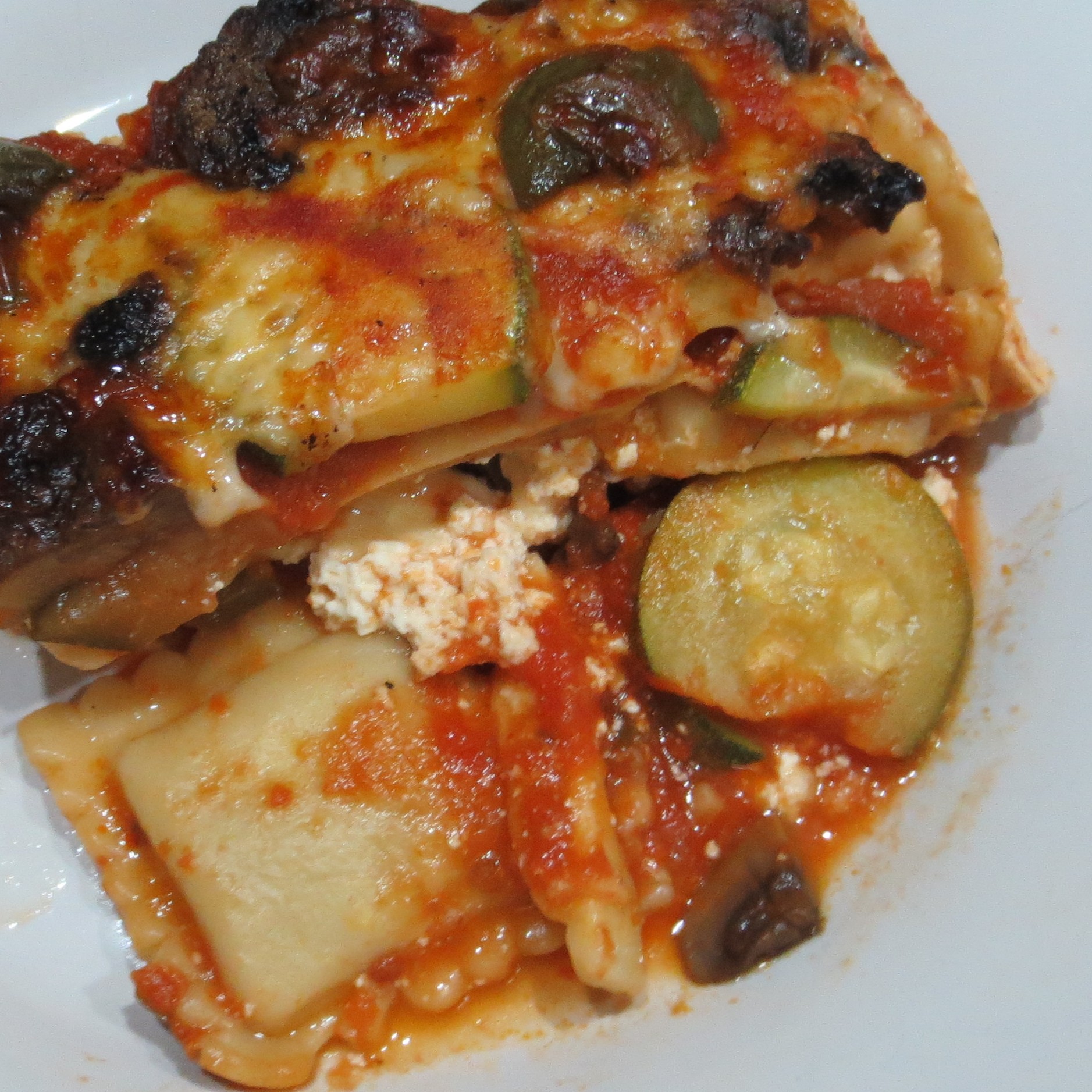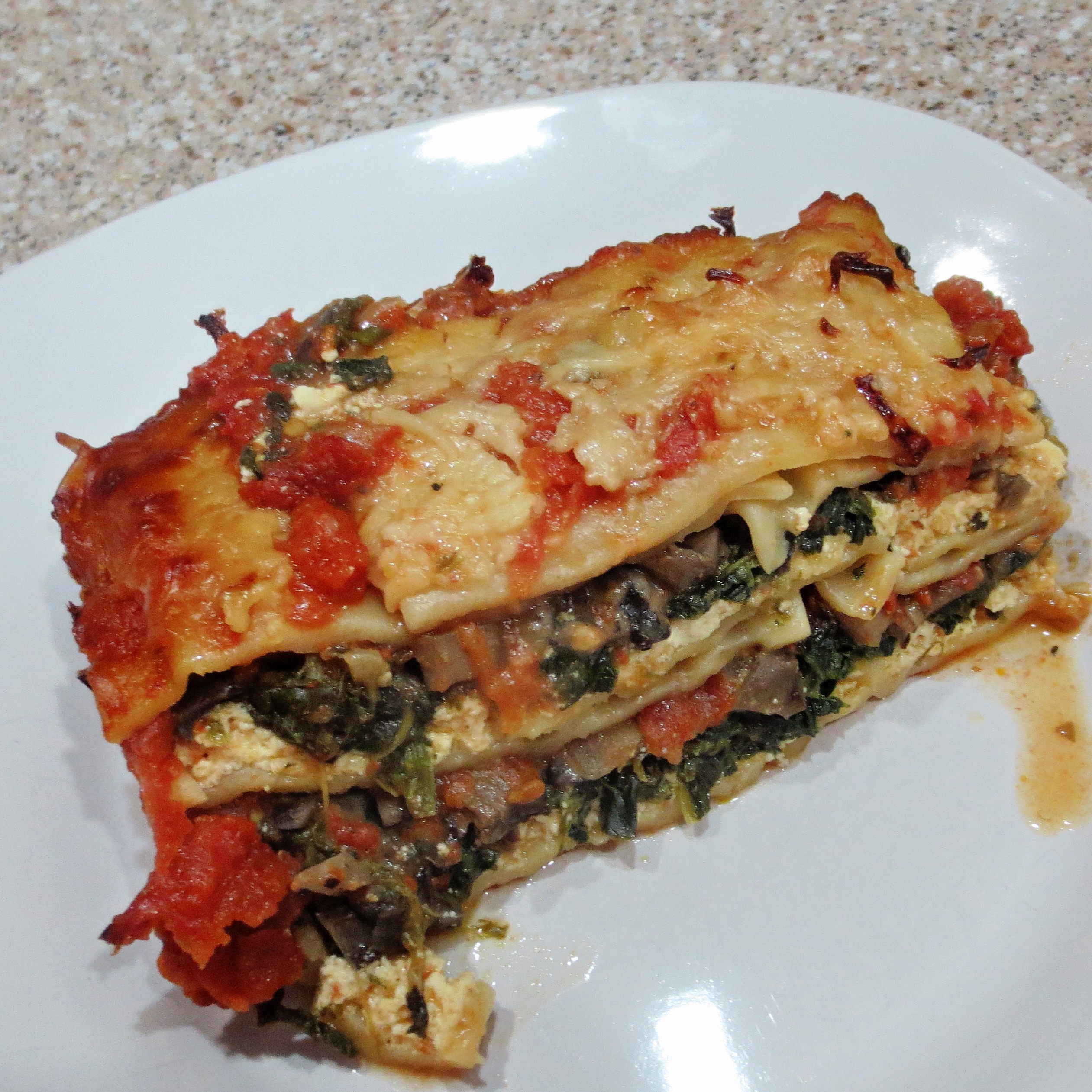 Perhaps that bathroom scale kicked the meatless entrees to the forefront of my menu choices. The recipe for Super Spinach Lasagna is supposed to produce 6 generous servings, but this time I split it between 2 baking dishes, froze half, and called it 8 servings total. Preceded by a House Salad, that portion was plenty.