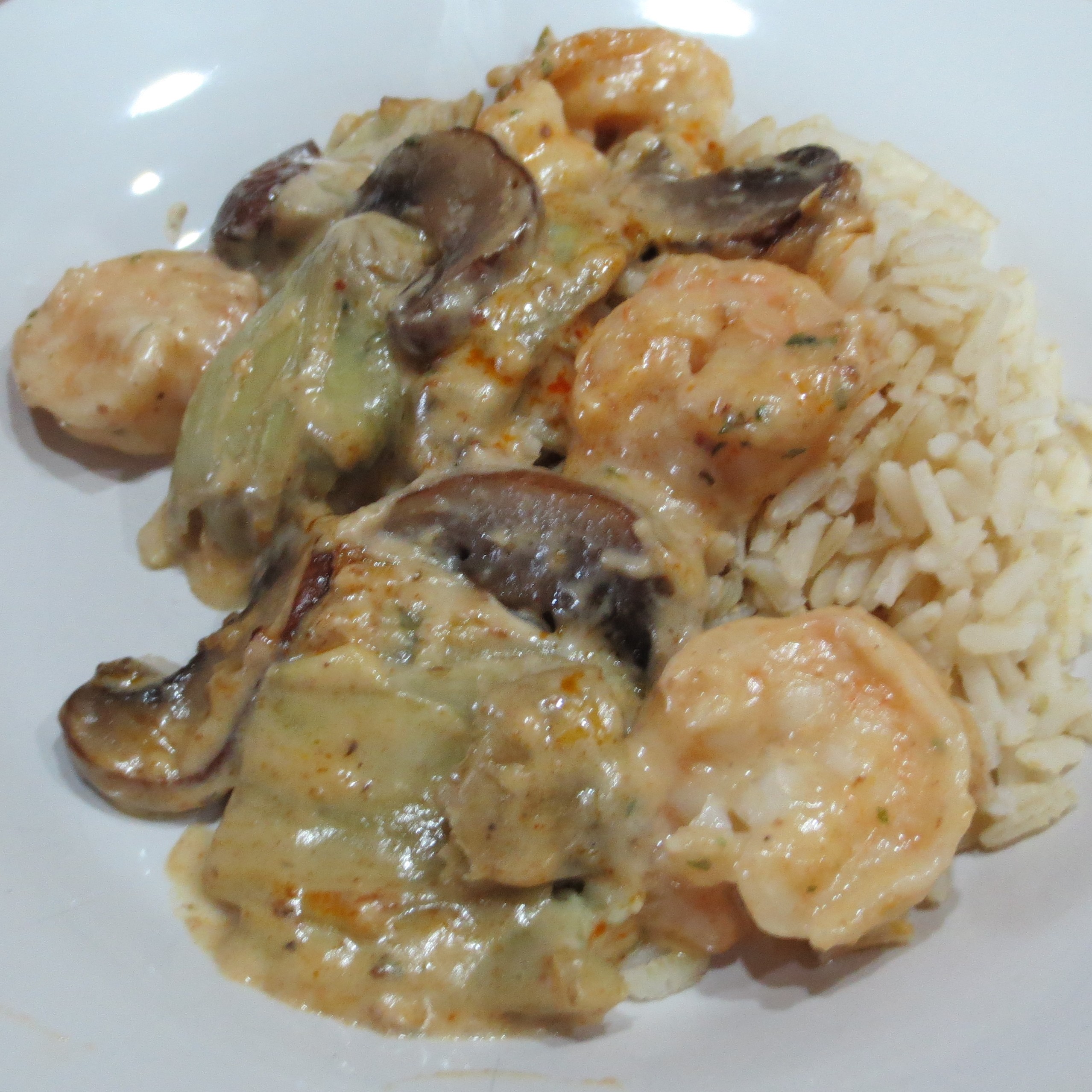 Friday night’s seafood was a bit of a surprise. I made Saucy Shrimp with Whole Corn Grits but I cheated a bit by using boxed frozen shrimp. The result was better than the original recipe. I don’t often recommend a particular product, and I certainly don’t ever get paid for doing so, but the shrimp I used was Publix Premium Cajun Marinated Shrimp. The flavor was spot-on and I saved a few steps. I think I’ll continue to use this short cut.