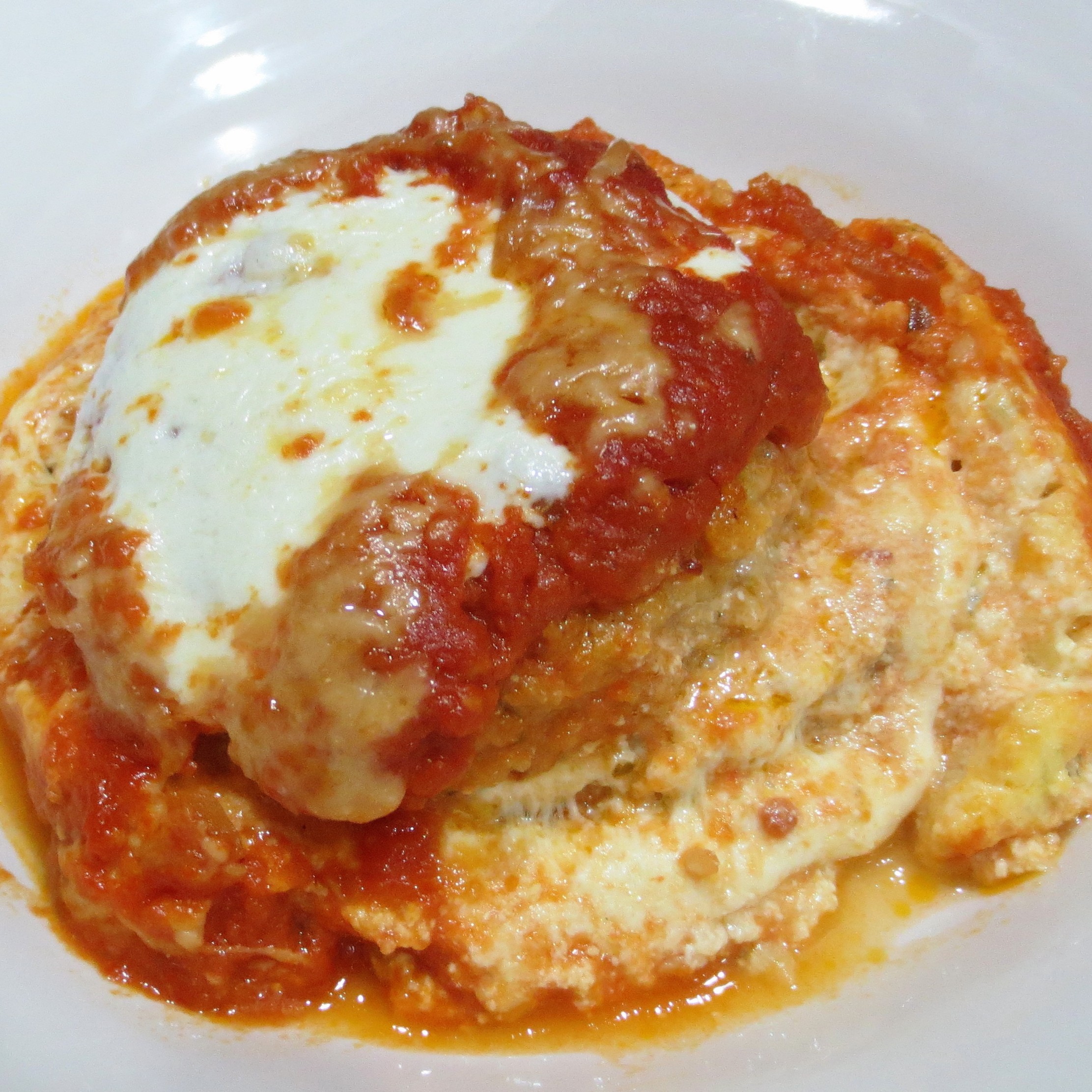 For a change, Meatless Monday really was meatless. Eggplant Parmesan seemed appealing, and eggplant was on sale, so that’s what we had. No matter how hard I try, I can never prepare any dish to serve only the two of us for one meal. The other half went into the freezer for another day. Will I ever get that freezer under control?