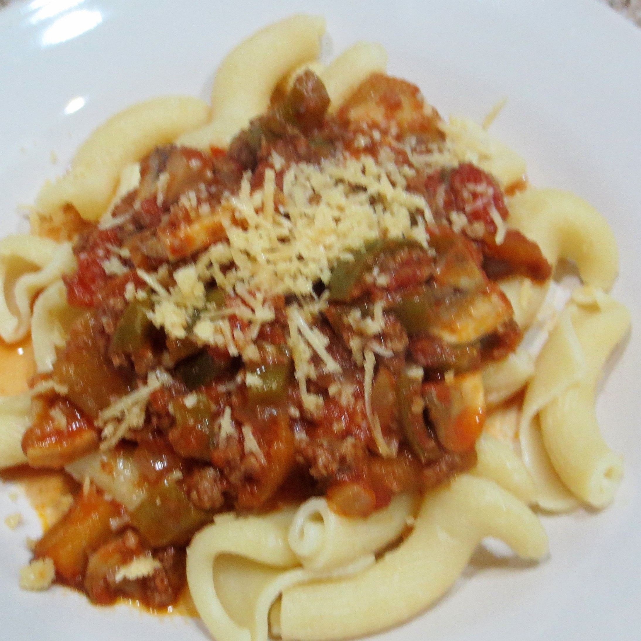 Thursday I made yet another effort to reduce my freezer inventory by pulling out a package of meat sauce. As usual, I couldn’t leave well enough alone and added some extra veggies. What should have been a simple meal for two morphed into dinner for four. OK, guess what we’re having on Saturday?