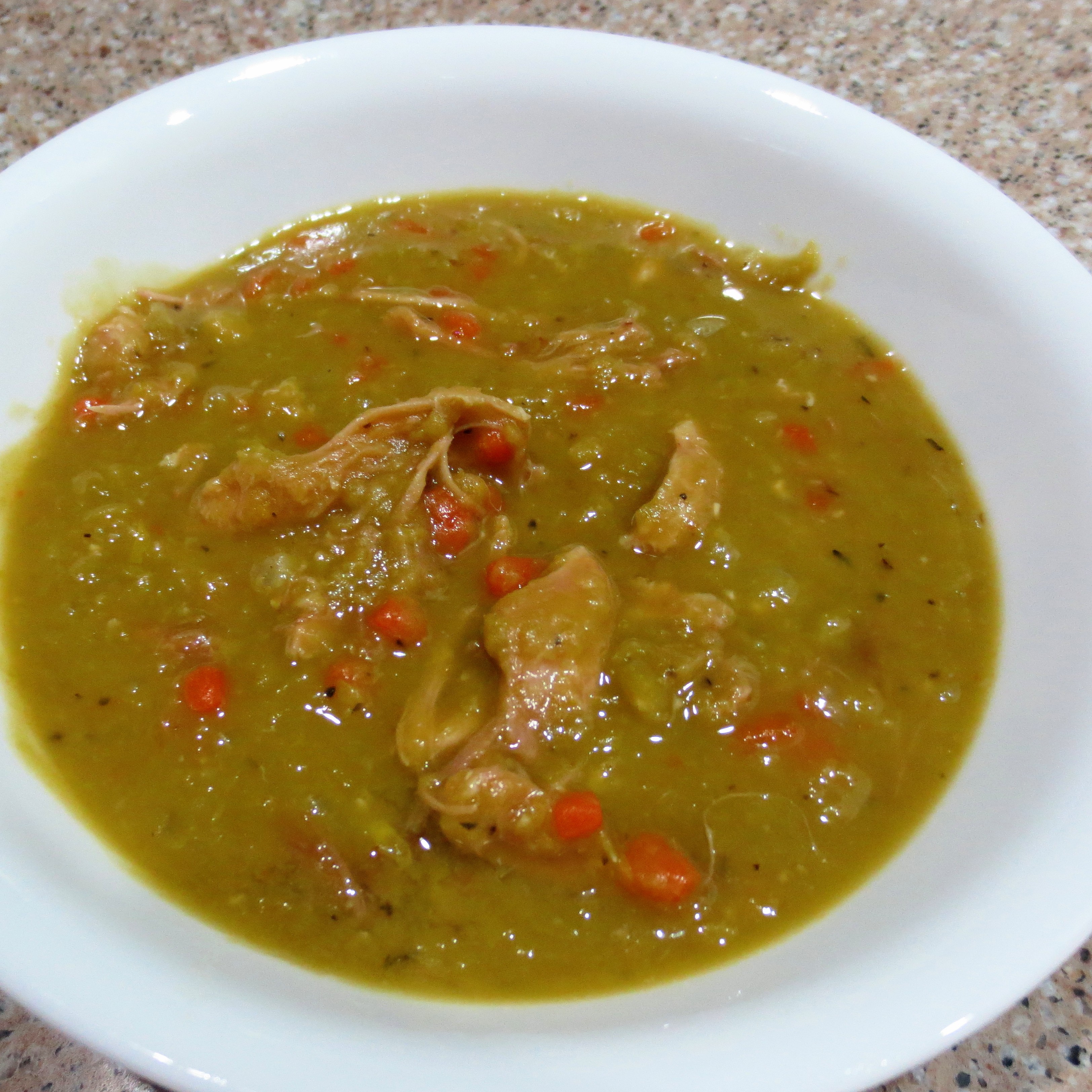 Tuesday we had another cold snap. Around here they call it “Dogwood Winter”. Every year when the dogwoods are in bloom and you think spring has finally come the weather turns nasty. It was cold, rainy, and just plain gloomy, but it was also one last chance to enjoy a pot of soup. This time I made Smoky Split Pea Soup. Trust me, it tastes much better than this photo makes it look.
