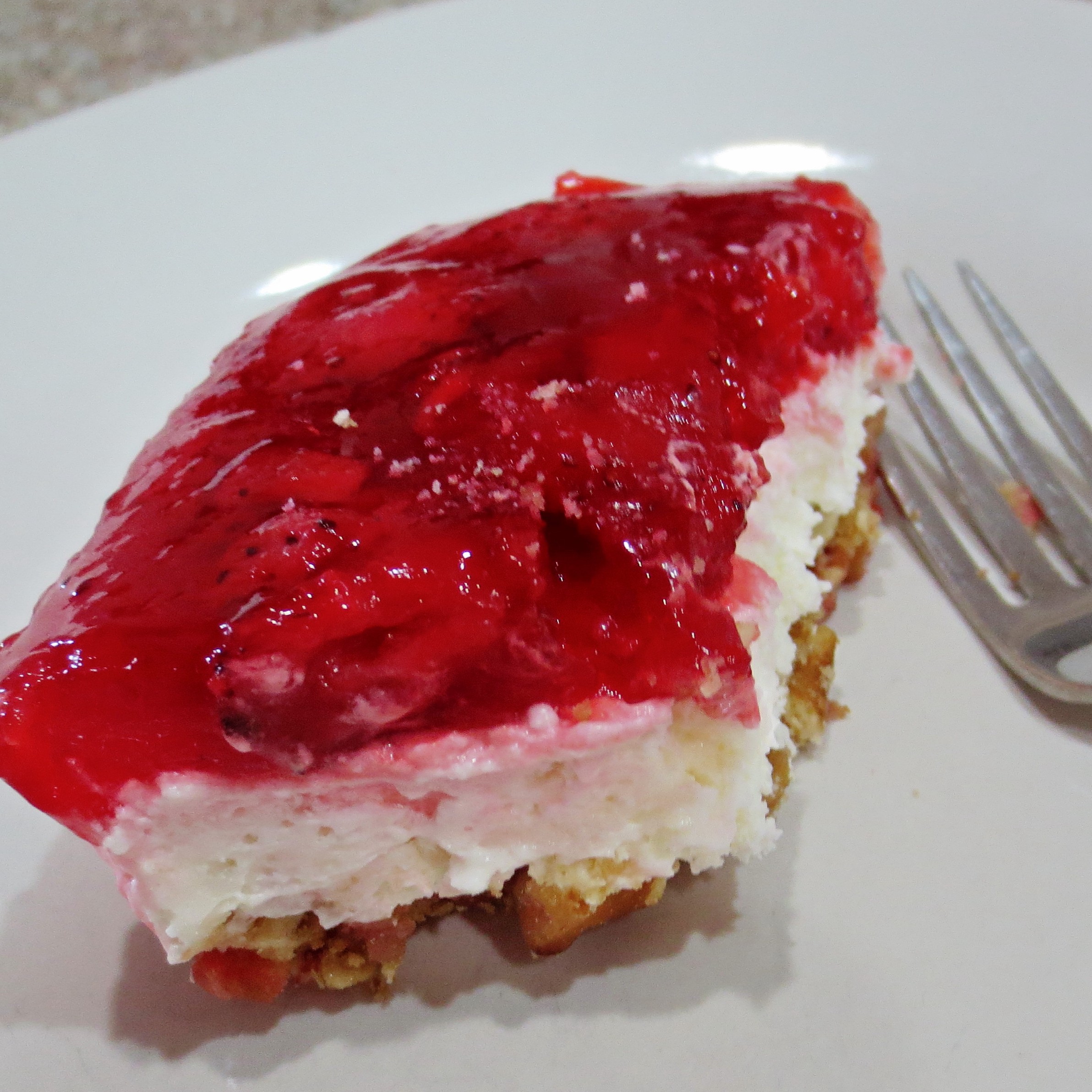 Of course, we couldn’t have a big family dinner without dessert. New York Cheesecake was topped with Blueberry Sauce to order. There was a new offering as well, Strawberry Pretzel Salad. Oh my gosh, was that ever good! We’ll have to make a choice though. Either I find a way to lighten the recipe or that dish is reserved for only once a year.