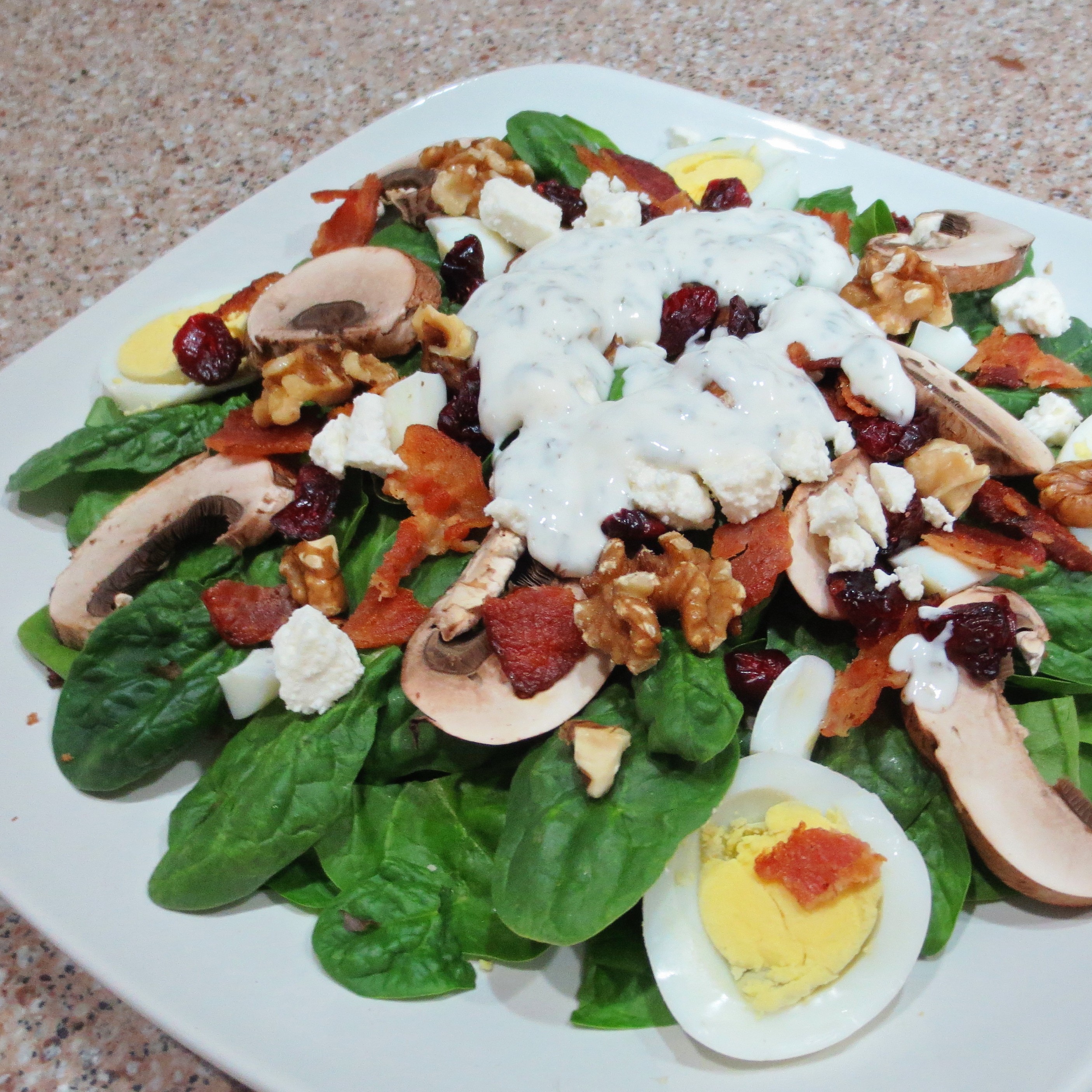 By Friday we were full of chicken and I was ready for a break. Spinch Salad Supreme popped up again. I guess in honor of Fishy Friday I could have added some grilled shrimp, but I didn’t think of it at the time.