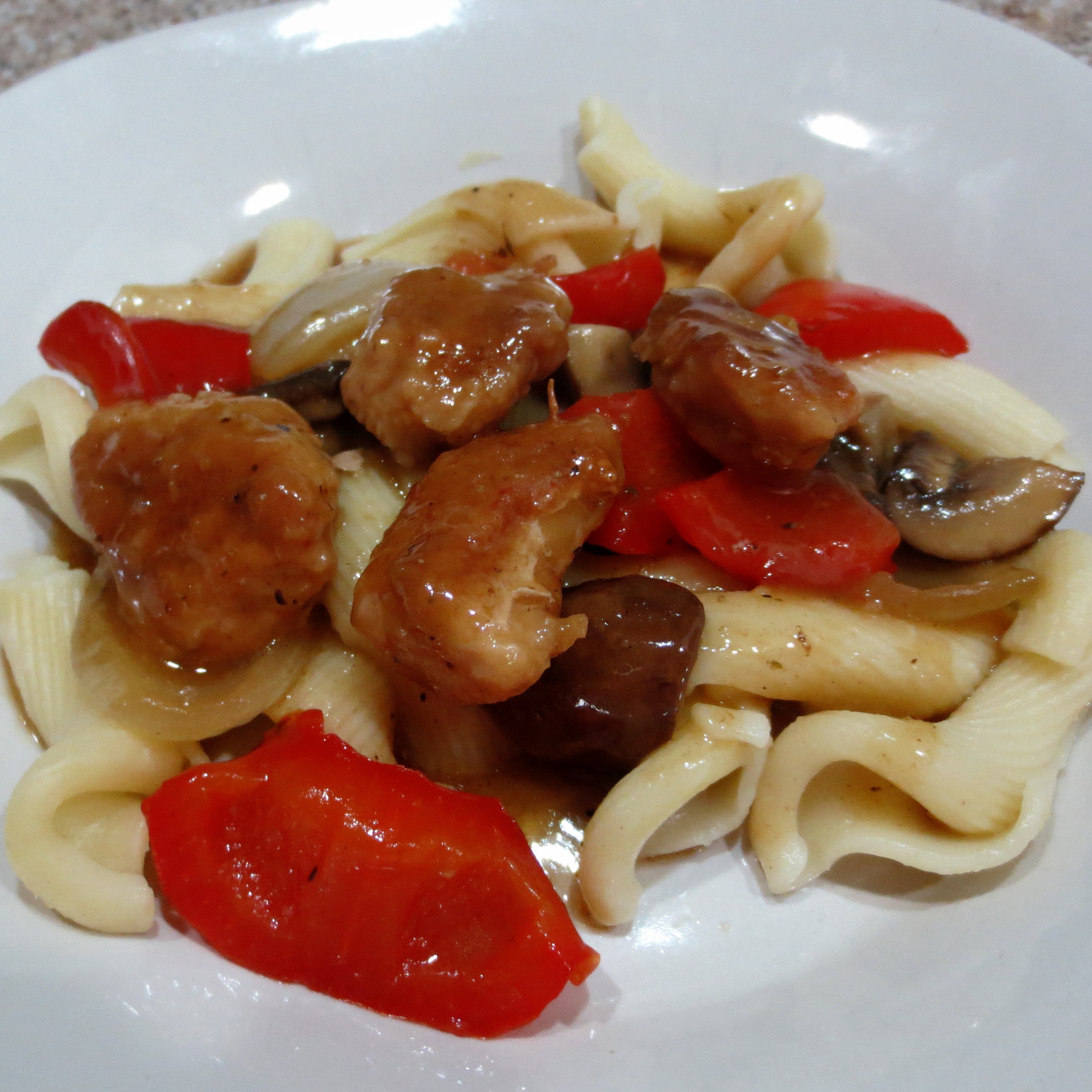By Wednesday, I was again happy to have The Sticky Menu Plan in place. Emily called to tell us that Kelton’s first baseball game of the year was Thursday night, So Wednesday and Thursday’s stickies were reversed. No Problem! Both days I had planned on Freezer Food, but the Mushroom and Pork Skillet Dinner takes a little longer to get to the table, so we had that over pasta on Wednesday, along with with a House Salad.