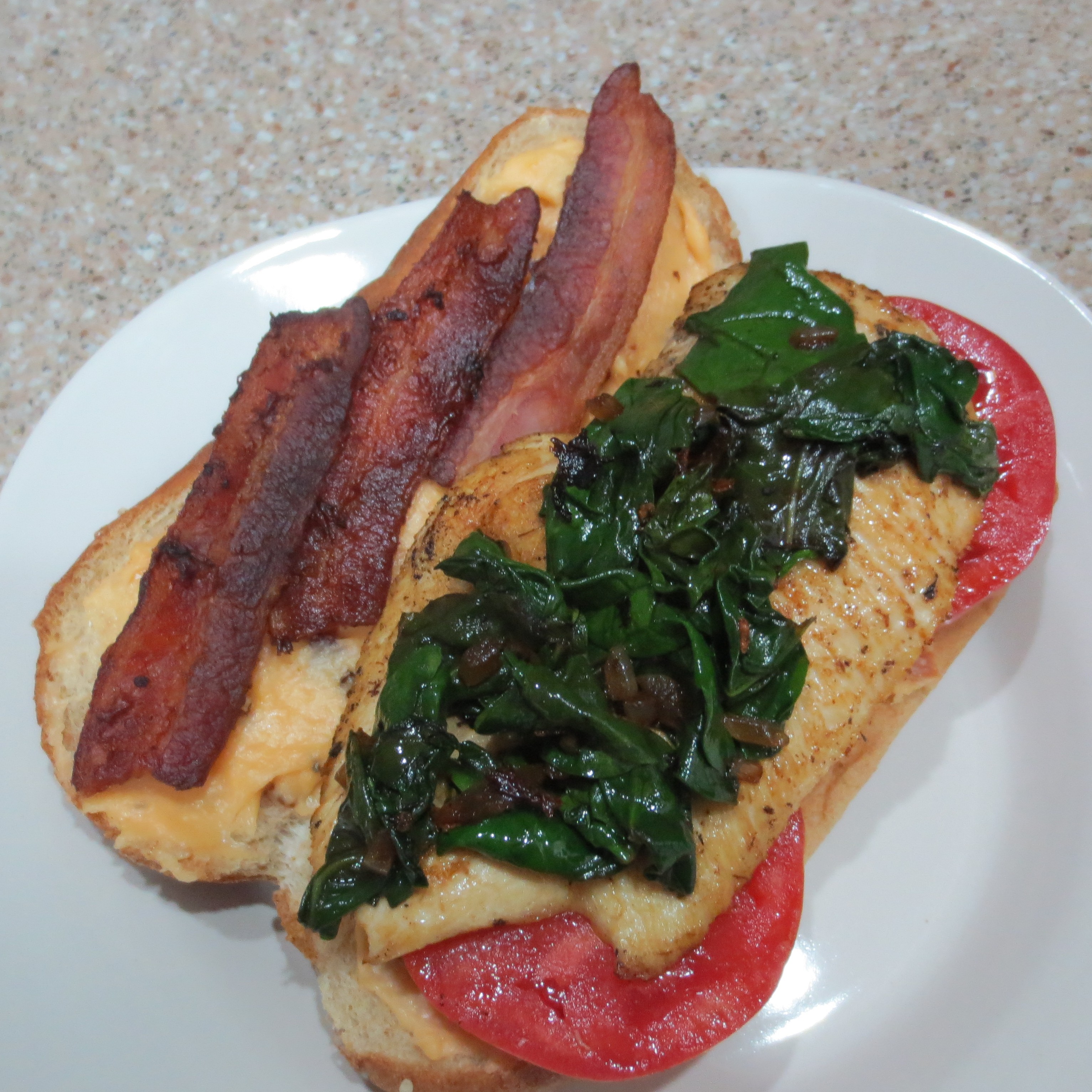 Thursday’s dinner was a little decadent calorie wise. We had Chicken and Bacon Hoagies. Probably half of one of those would have been plenty, especially with a House Salad. I didn’t have any Swiss cheese on hand, so I used cheddar. I think Swiss is better.