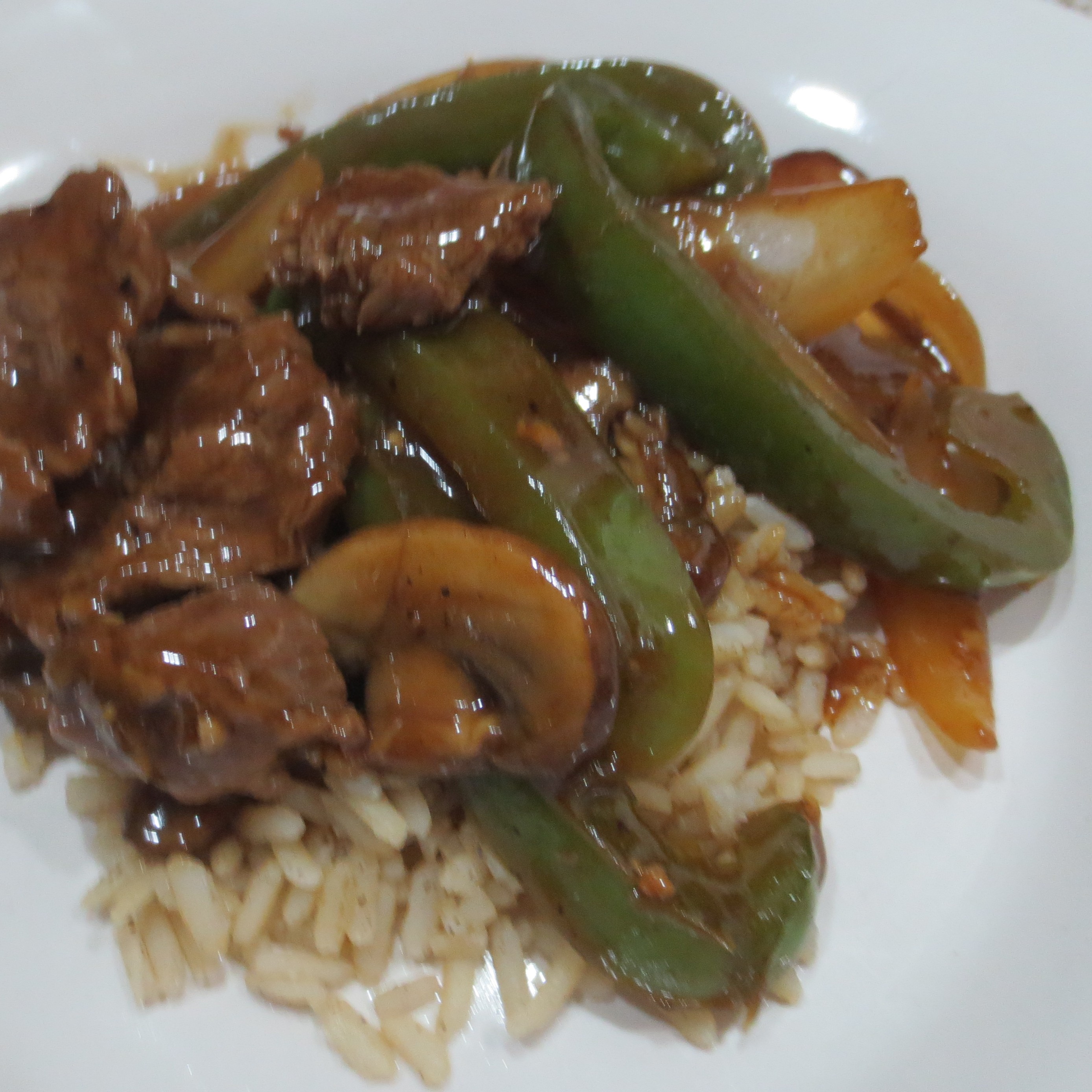 Thursday was a blast from the past. I learned how to make Pepper Steak as a Girl Scout in about the fourth grade, and the recipe hasn’t changed much since then. It’s really a pretty economical dish since a small amount of beef is thinly sliced and you can utilize less expensive cuts. I used some flat iron steak that was on sale.