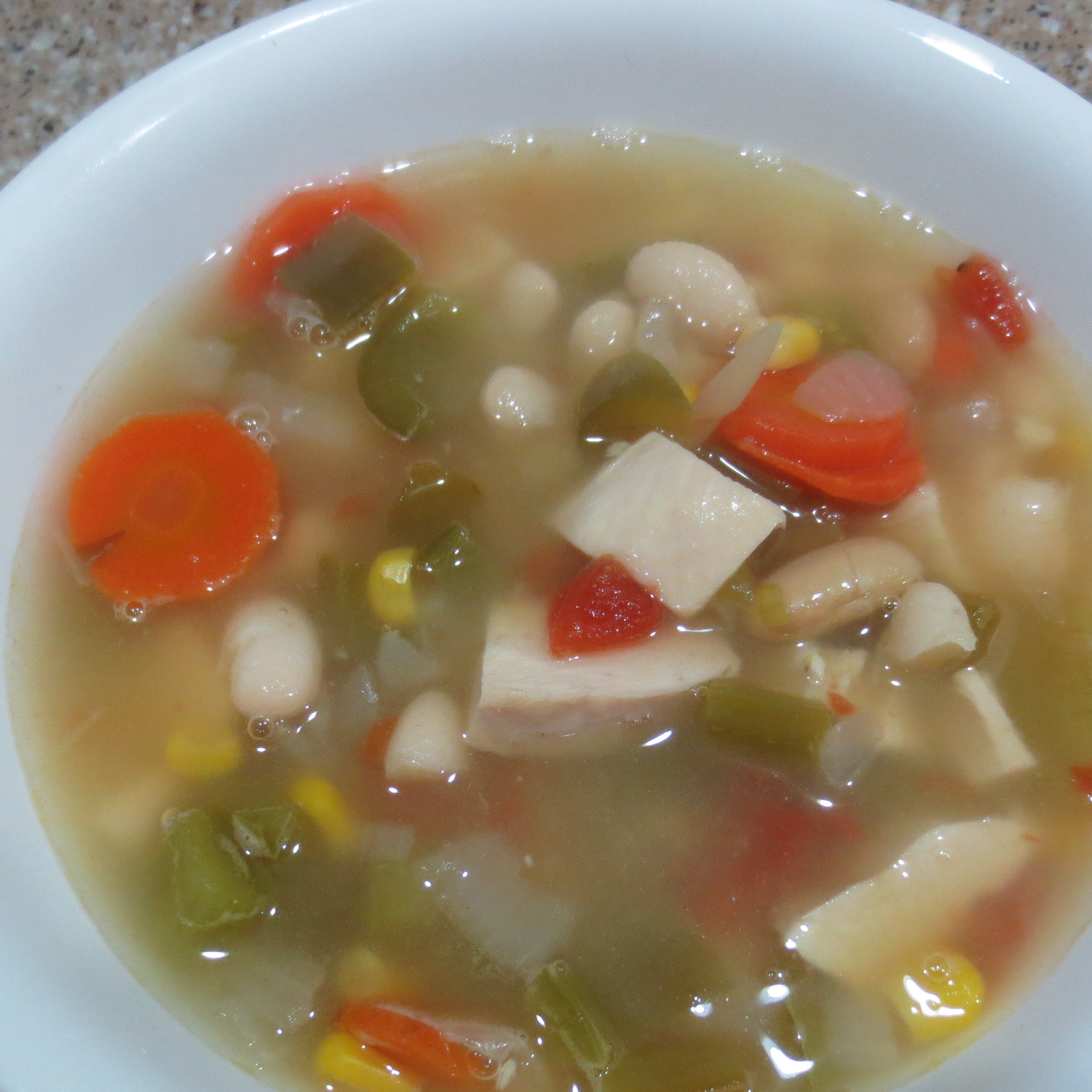 Friday’s dinner was as the result of my using The Sticky Menu Plan. I had planned to serve my Artichoke, Shrimp, and Mushroom Casserole last week, but as usual, life got in the way and that dinner just didn’t happen. I just slid the shrimp dish to this week’s Sticky Menu Plan and pulled soup out of the freezer for that night.