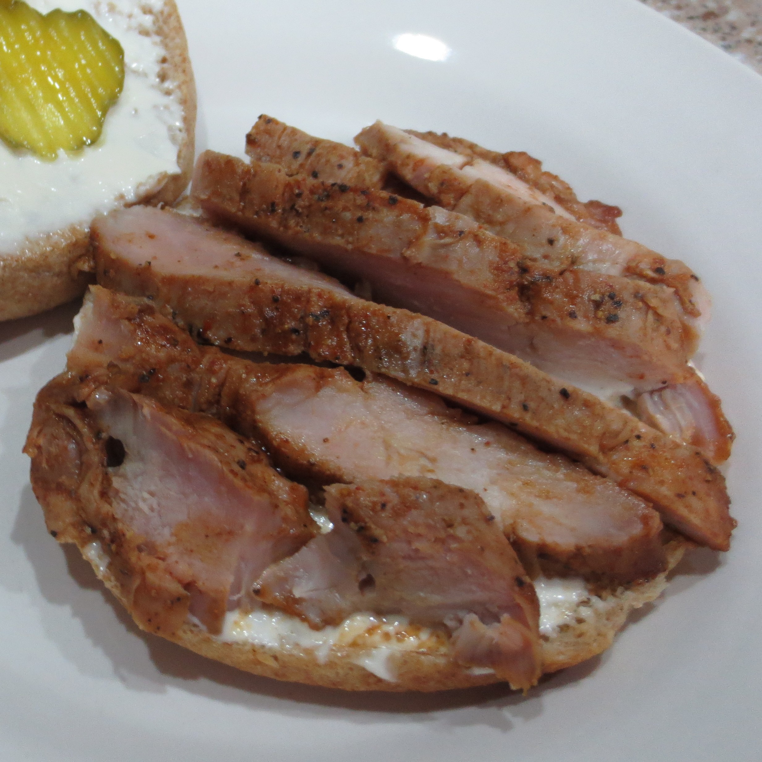The stickies on my calendar just can’t sit still. Monday I had planned to try to come up with a new recipe using quinoa. Well, that didn’t happen. We got a call early in the afternoon to tell us that Kaij was at the hospital with a suspected case of appendicitus and we needed to get Kelton. (It wasn’t appendicitus, Kaij is fine.) Luckily, I hadn’t started cooking yet. When we got home that leftover pork sure made a tasty sandwich.