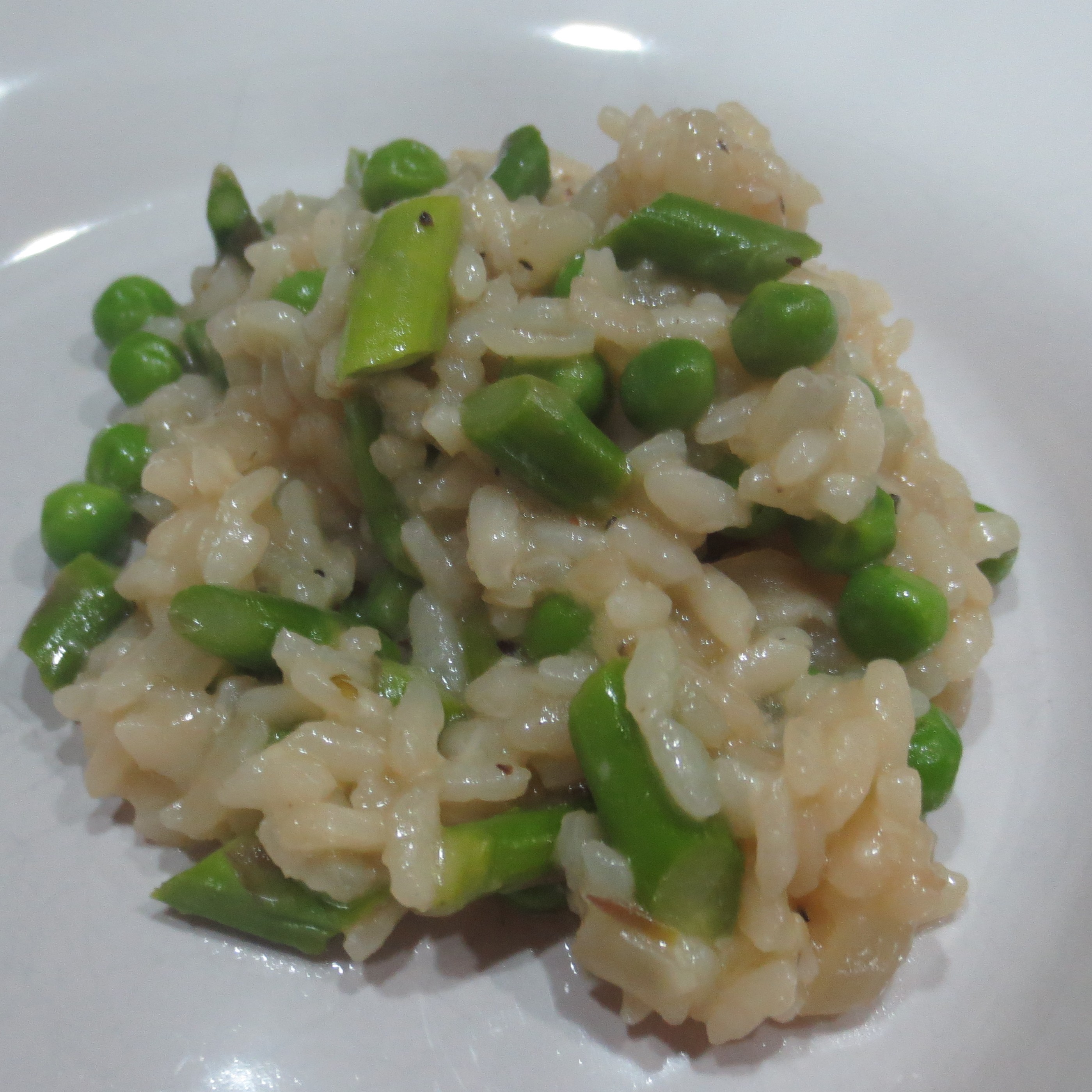 Sunday I made an effort to refine my recipe for Raspberry Chipotle Glazed Chicken Breast. I don’t generally care for sweet meat dishes, but this one has just enough kick to off-set the sweetness. I also took the time to stir up some Vegetable Risotto with asparagus, peas, and Parmesan. It’s a side dish that I really like, but it does require quite a bit of hands on time. The reward is that it makes 6 generous servings and freezes well, so I now have 2 extra side dishes for later. While these two dishes are delicious on their own, they did not go together well at all. What was I thinking?