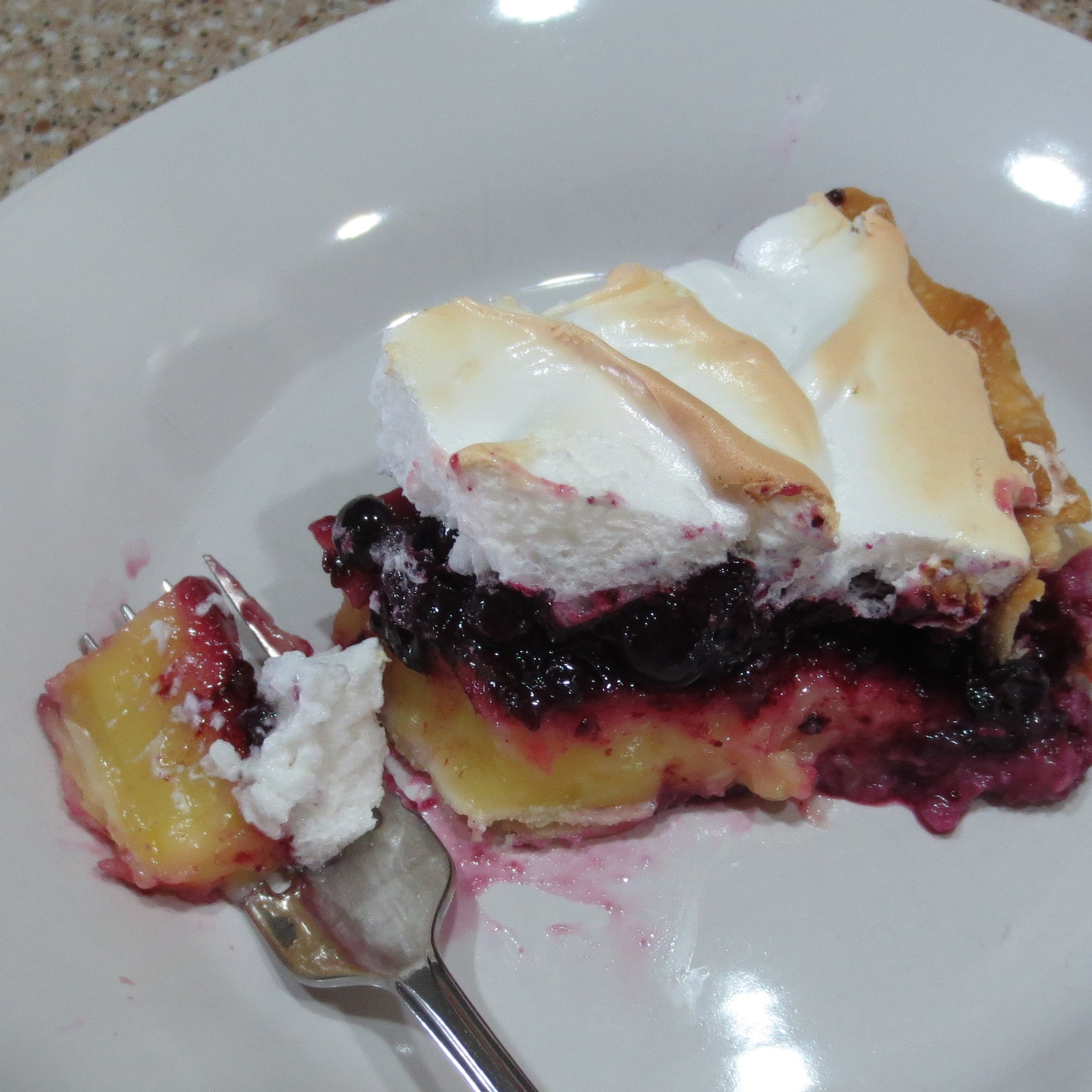 Thursday we enjoyed dinner out, and then it was the dreaded Fishy Friday! I love almost any kind of seafood, but Michael is more selective. He doesn’t want anything that smells or tastes “fishy”, so he’s a challenge. Since last week’s attempt at lobster rolls was such a failure, I had to come up with a bribe to get him to let me try again. I combined two of his favorites, Lemon Meringue Pie and Blueberry Pie. Thus, the Blueberry Lemon Meringue Pie. The pie was really tasty, but I think I’ll leave lobster rolls to you in New England! Be thankful for what life gives you.