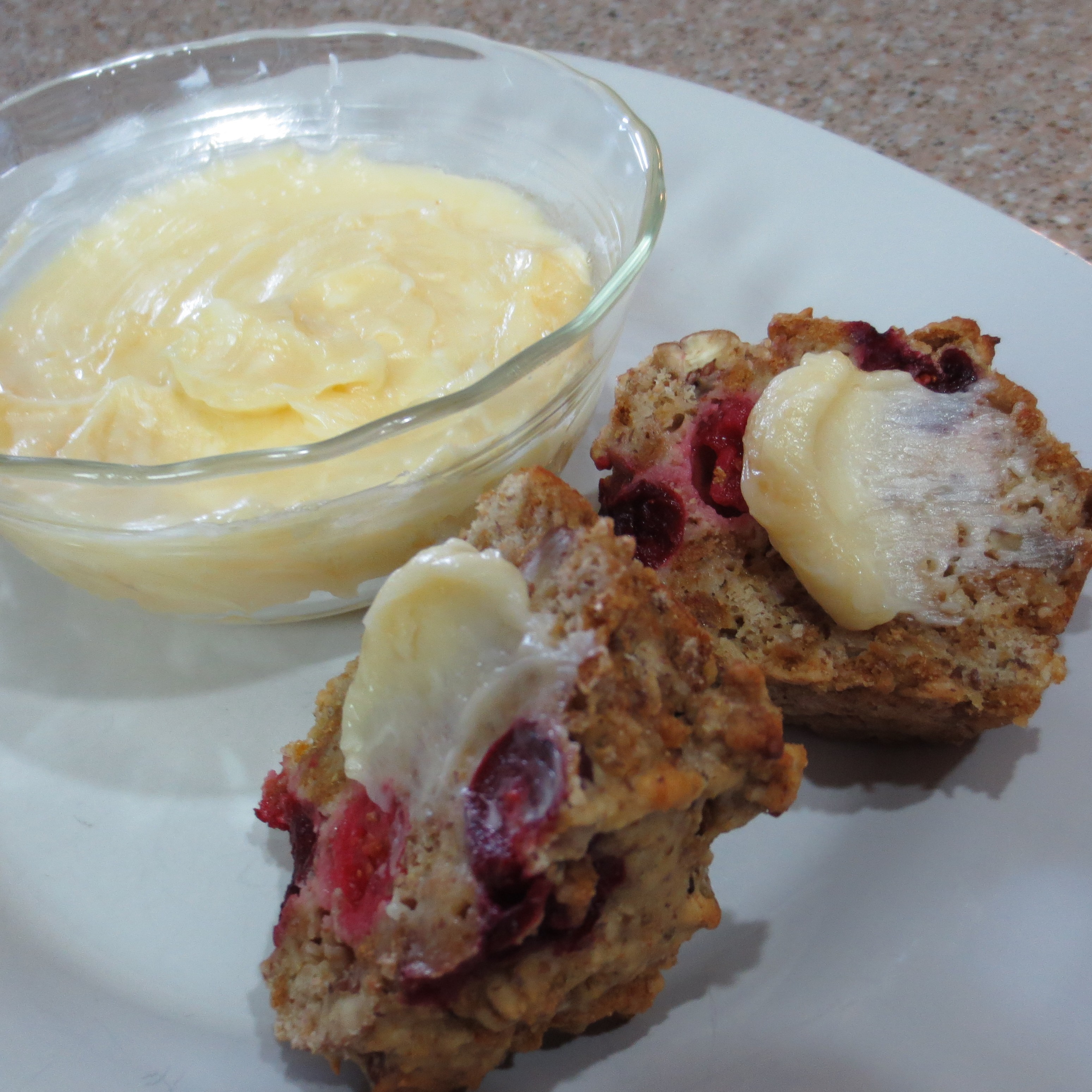 Friday I realized why I tell folks I can’t multi-task and why it’s true. When I make up mixes for my White Wheat Biscuits I make up several batches in assembly line style. I thought that while I was at it I would whip together a batch of my High Fiber Cranberry Orange Muffins. Let’s just say they have turned out better in the past. If you want the gory details of what went wrong, just read the introduction to the recipe. In an effort to save them, I mixed together a stick of softened butter and a little honey to make honey butter. We’ll pretend that worked.