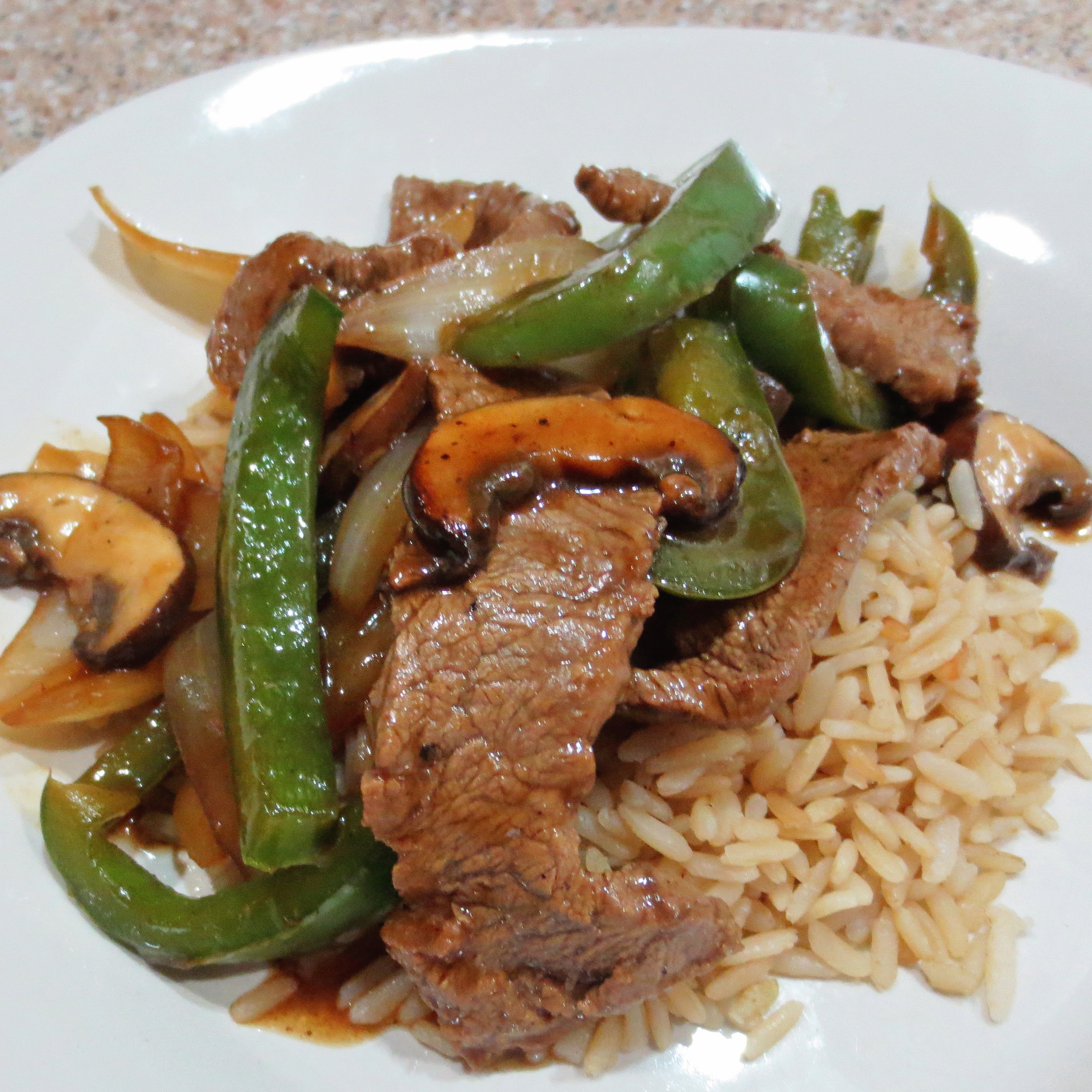 Wednesday night we were supposed to use up more food from the freezer, Stuffed Peppers. Well, I got a good deal on some marked down bell peppers in the produce department. Why should I take advantage of what I already have on hand when I can start on something new? Strip steaks and mushrooms were both on sale, too, so Pepper Steak for Two had to take the place of those boring stuffed peppers. I just slid that pepper sticky to next week. After all, they were already frozen, right?