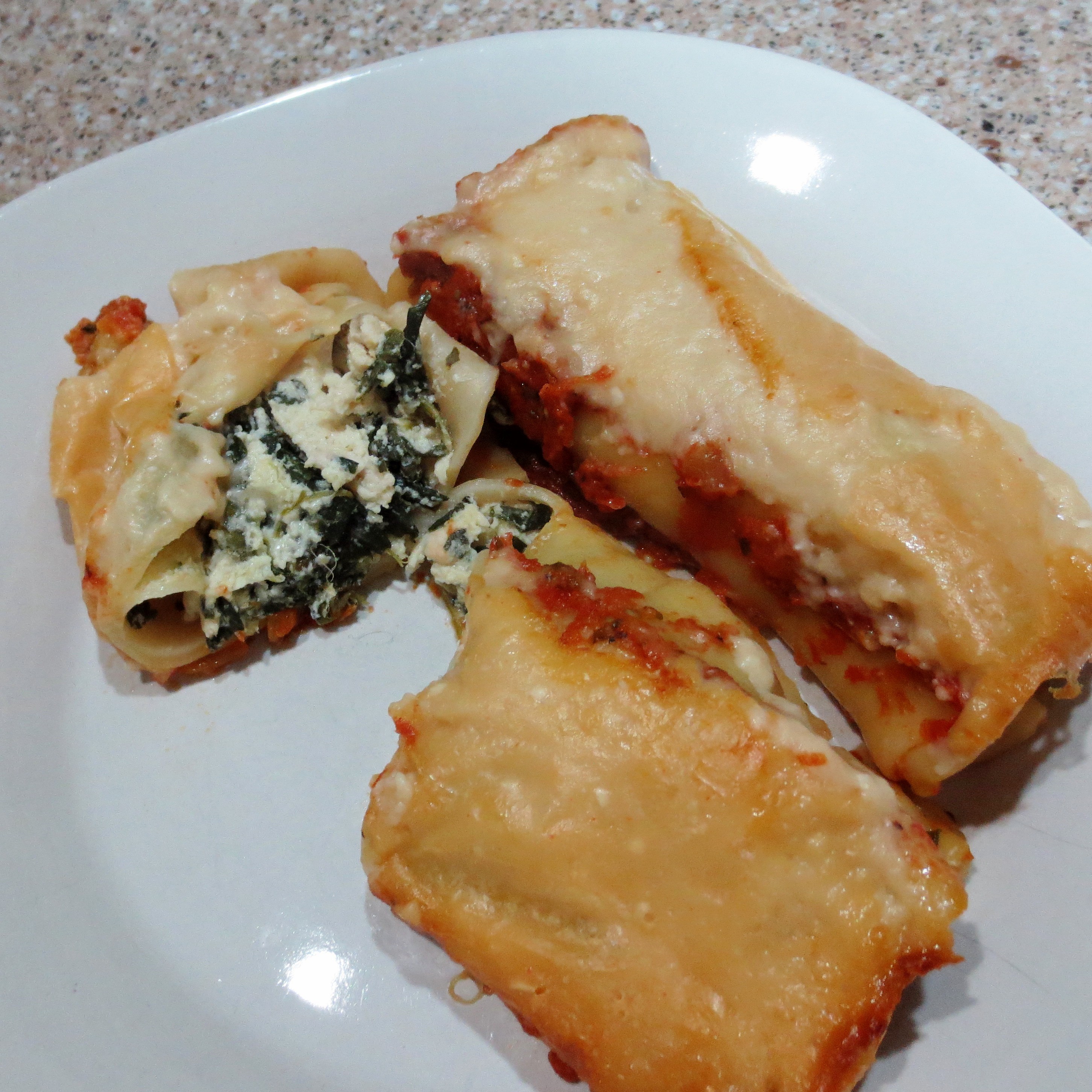 Relying on my weekly plan, I tried to make Monday meatless by pulling some Manicotti out of the freezer. Whoops! Although I often prepare my manicotti with just spinach and ricotta, this package was the chicken variety, and didn’t even have both sauces. Dinner was served.