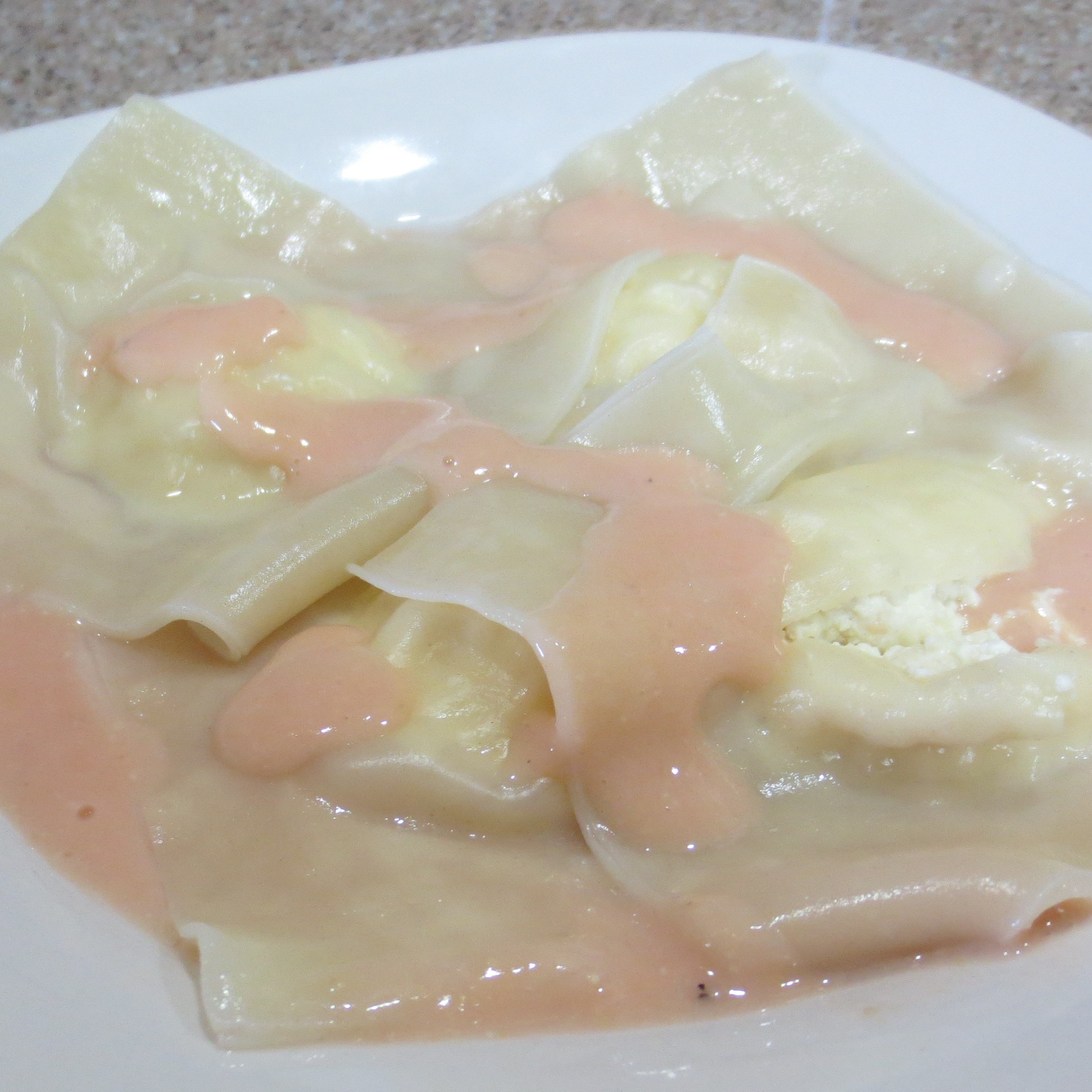 I’ve kind of jumped ahead of myself here. Last week’s batch of Fresh Ricotta Cheese was the base for another success for the recipe pages, Quick Chicken and Cheese Ravioli. These ravioli honestly are quick to prepare. They start with wonton wrappers from the produce department and precooked chicken. Just fill, simmer, and sauce! The ravioli are light and delicate, and I wanted a sauce to match. I based a new sauce on Cooking Light’s Brown Rice Cream. My Rosy Cream Sauce has a velvety texture with just a hint of creamy tomato flavor at just 100 calories per serving. Fast, light, and flavorful. What more can you ask from a weeknight dinner? (I do wish I had a better photo for you.)