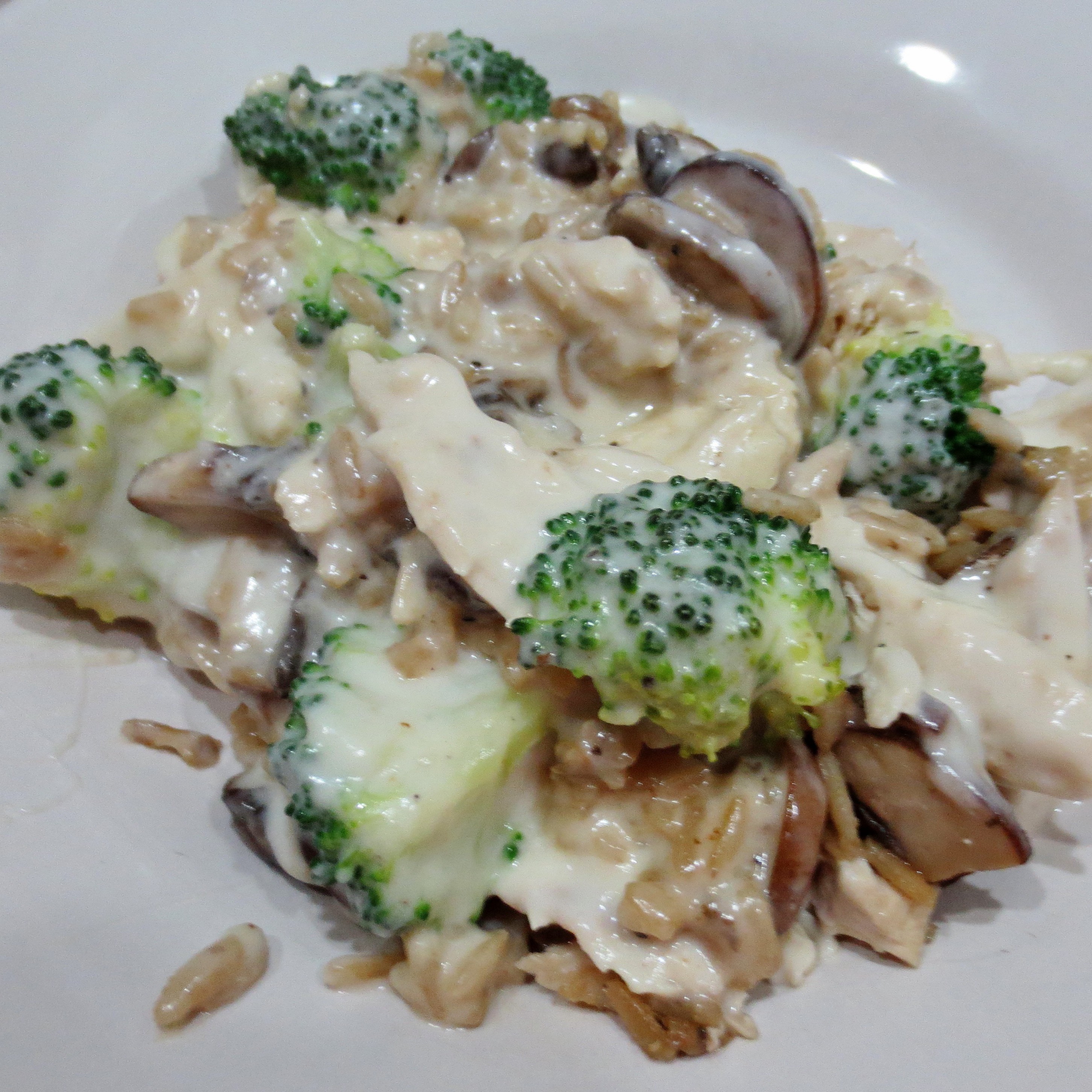 If you read my post a couple of weeks ago, (titled My computers were held hostage! ), you’ll remember that I was rather disappointed with my first attempt to develop a recipe for Chicken Divan over Porcini Rice. It wasn’t at all hard to identify the problems, most of which boiled down to technique. The timing of the individual recipe elements was off, leading to the fact that the casserole was just plain over-cooked. The type of cheese I originally selected clashed with the other flavors as well. I tried a re-make of the recipe this Sunday. All those problems were succefully corrected, and the final recipe is a keeper. The first photo below is my first attempt, and the second is the end result. The difference is pretty obvious, don’t you think?