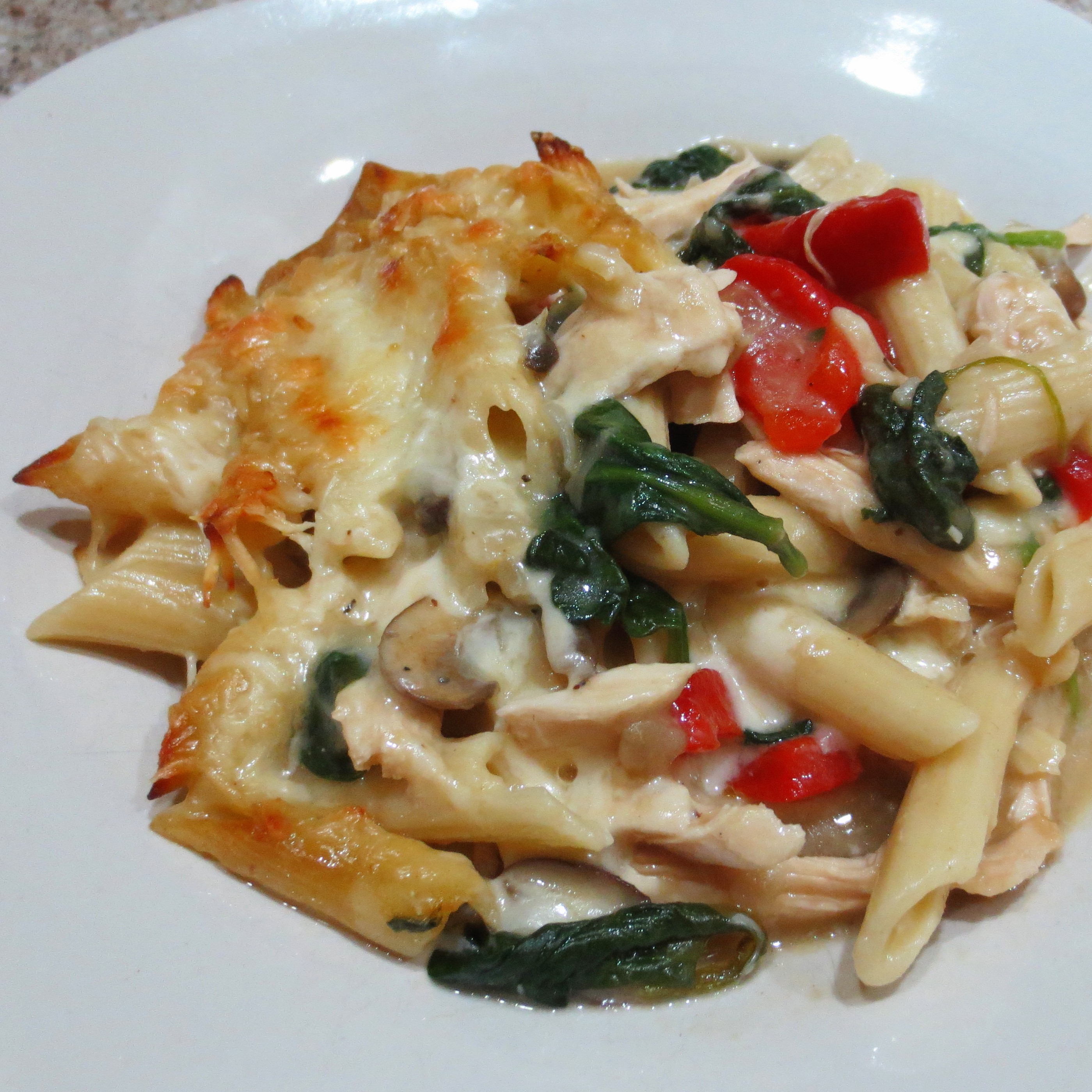 Before the carpet cleaning began, Sunday’s supper was a simple but very good casserole, a Chicken, Spinach, and Mushroom Pasta Bake. That recipe makes an extra large casserole, more than enough for three meals for the two of us. Besides Sunday night, we dined on a second dish at the end of one of those carpet cleaning days and the last dish went into the freezer.