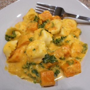 This is hard squash season, a vegetable I don’t have much experience with, but I’m trying. Last week’s effort was Butternut and Kale Tortellini. Epic Failure! To start with, Michael likes spinach, but kale is a whole different story if you get my drift. The sauce was bland and boring, and to top it all off, the roasted squash sort of fell apart in the final dish. Three strikes and it’s out! Oh well, some times you win and sometimes……