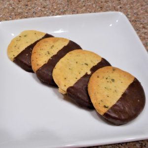 Speaking of sweets, what’s Christmas with out cookies and candies? Do you think Santa would just quit coming to our house if we didn’t leave him out a plate of goodies? We left him a couple of new ones this year. Delicate Mint Thins are made with fresh mint and dipped in dark chocolate. They are reminiscent of the traditional Girl Scout cookies, but on a grown up level. As delicate and delicious as they are, these slice and bake cookies are very easy to make.