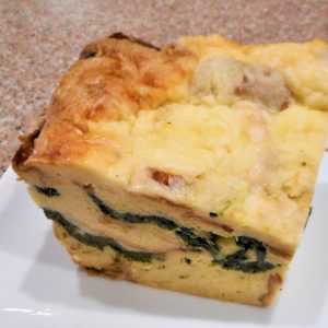 I did a LOT of menu switching last week. In fact, what we actually ate bore no resemblance to the plan, partly because our family celebrated the holidays with a brunch on the 29th. As usual, my menu was excessive and we had plenty of leftovers that had to be used. When does a Baked Ham ever get completely consumed at the original occasion? Along with many of my tried and true recipes I wanted to try something new, a Spinach and Fontina Strata. I think that recipe could use a little tweaking. The biggest issue is the cheese. Young Fontina is expensive and hard to find. I don’t think it exerted its presence in this recipe strongly enough to justify the cost, nor the effort it took to track it down. I think Gouda or even Monterey Jack would work at least as well. The Challa bread could have used a little time to stale up, but I do think it was the best choice of bread.