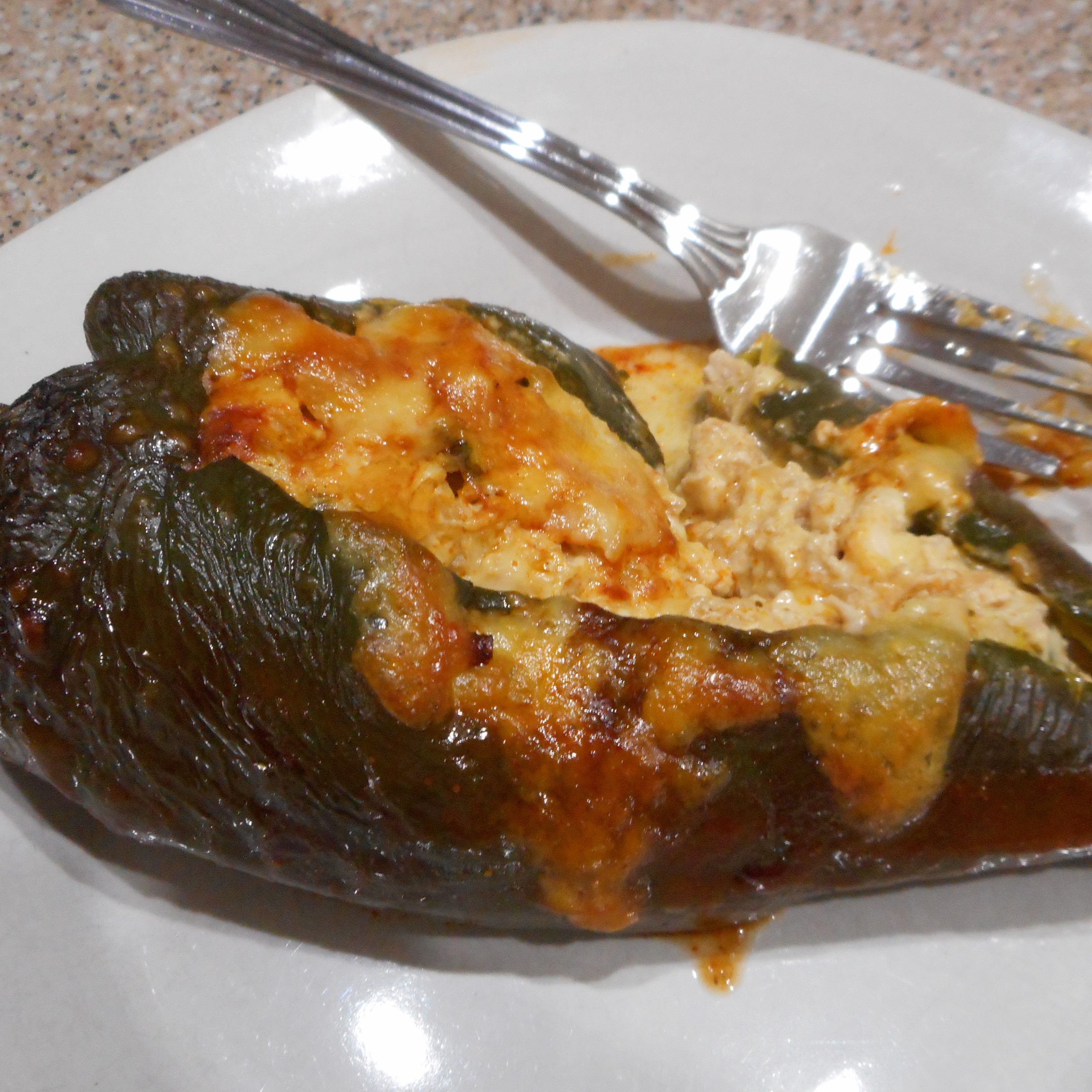 Michael and I both love Mexican inspired food. Somehow, pork is always in abundance in my freezer, and thus Porky Poblanos came to be. Sort of a pork filled version of a chile rellenos,these are filled with seasoned ground pork and cheeses, including queso fresco. While traditional rellenos are battered and fried, my Porky Poblanos are baked in a mild enchilada style sauce that’s made partly with V-8 vegetable juice, so they skip much of the fat and sneak in a bit of veggie nutrients. Nothing wrong with that!