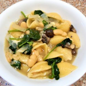 Just one more dish for Meatless Monday was almost meatless. That ham broth snuck a subtle bit more flavor into a skillet of my Pasta with Beans and Greens. I guess, technically, the skillet was no longer meatless, but there wasn’t any meat in it, so who’s counting! Sometimes you take what you can get!