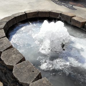 Take a look at how cold it’s been here in North Alabama! That’s the frozen fountain in our little backyard fish pond. It has NEVER frozen like this before. I have no idea how our koi are doing. When we built the pond it was recommended that you have a minimum depth of 18 inches to keep fish. That we have, but will it be enough? I guess we’ll find out.