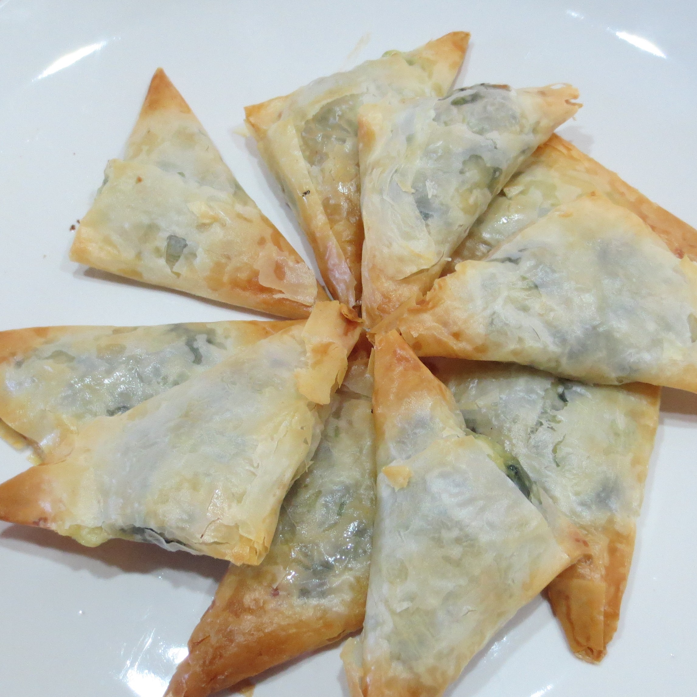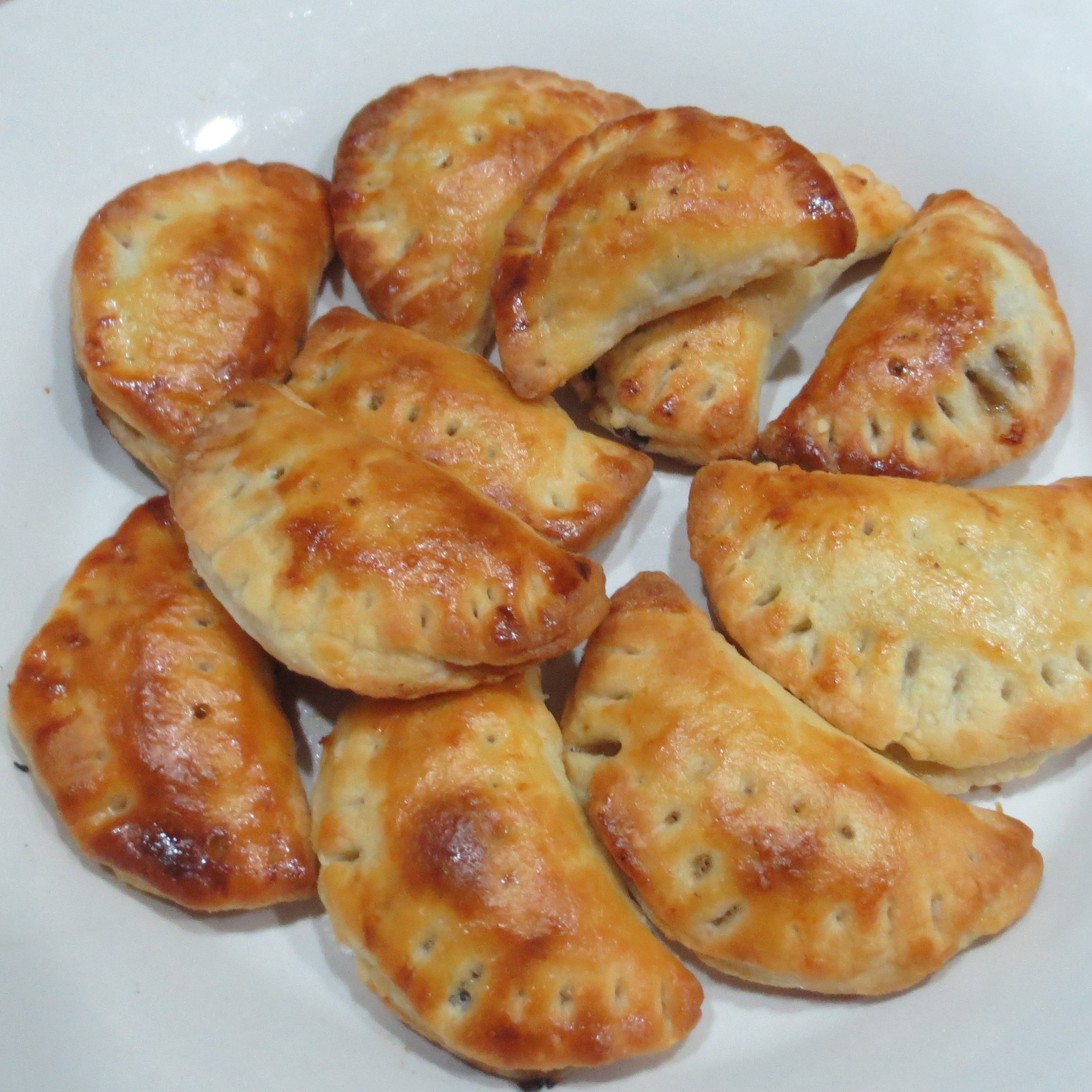 Spinach and Cheese Filled Triangles are another requirement, as are Hot Mushroom Turnovers. Both of those are a bit time consuming. This year, after forming a few of the turnovers, I tried to change things a bit to speed the job up.