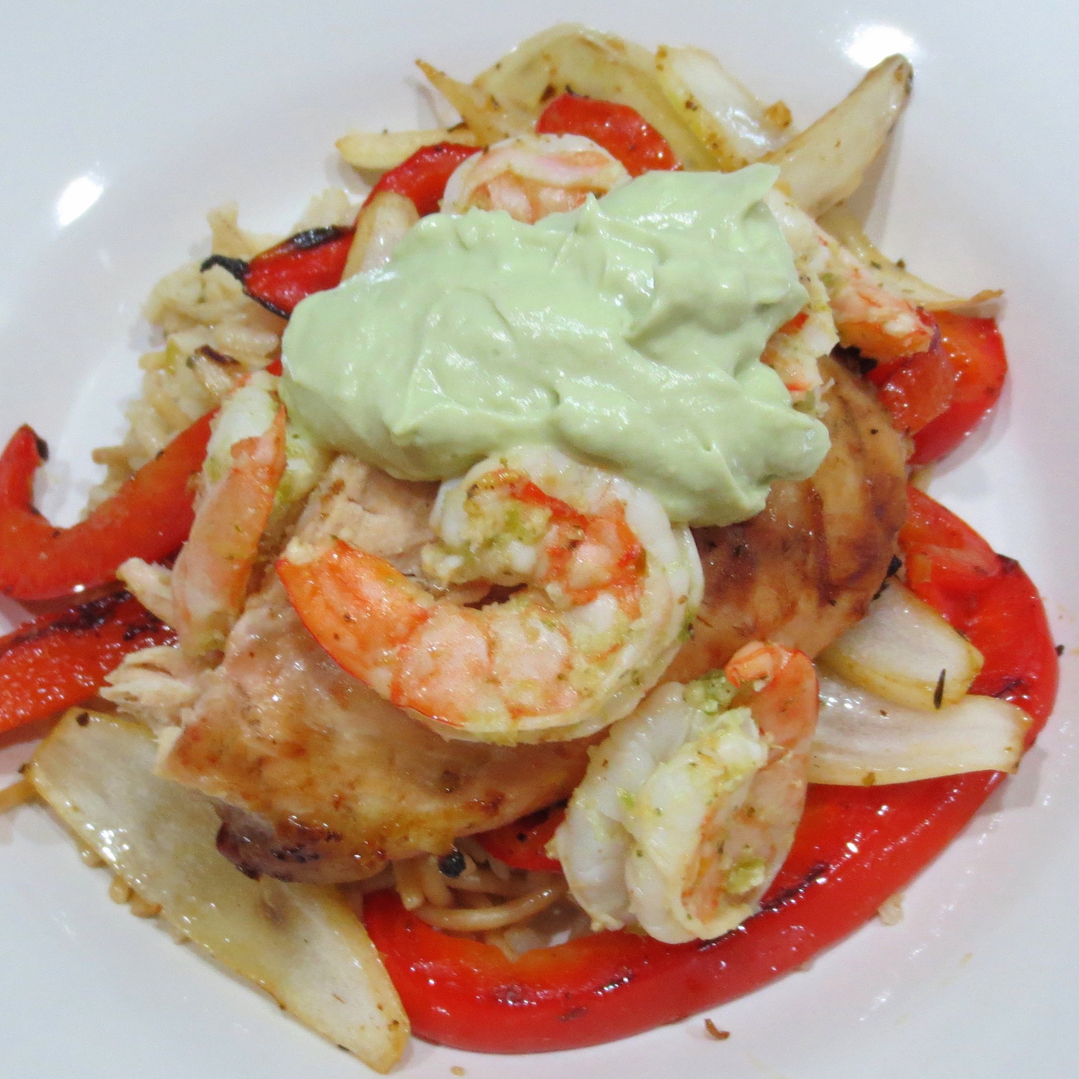 Friday we enjoyed a revamped version of Tequila Lime Chicken and Shrimp. Without thinking, I used all my fresh lime juice in the marinade. When I was ready to prepare the Avacado Cream sauce that is part of the recipe I had no lime juice left. I just left it out, and you know what? Michael and I both liked it better that way. I’ve re-written the recipe to reflect that change.
