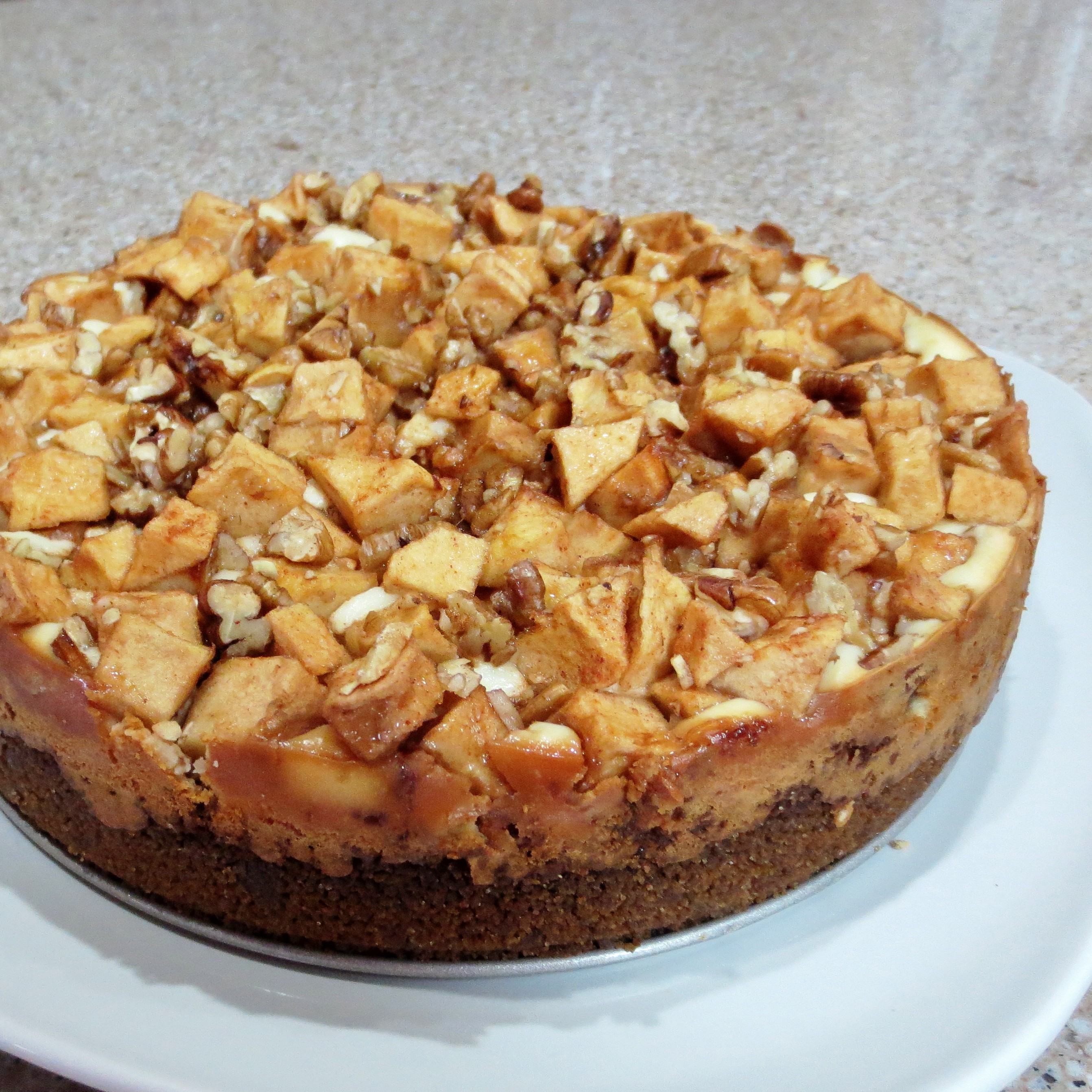 With still more apples and a little more ricotta to be used I decided to merge the two into an Apple Pecan Ricotta Cheesecake. I haven’t finished compiling exactly what I did into a real recipe, but I hope to do that soon. It’s late Saturday evening now and I still have a lot to do for our family Holloween chili supper on Sunday. Look for that recipe by some time Monday.