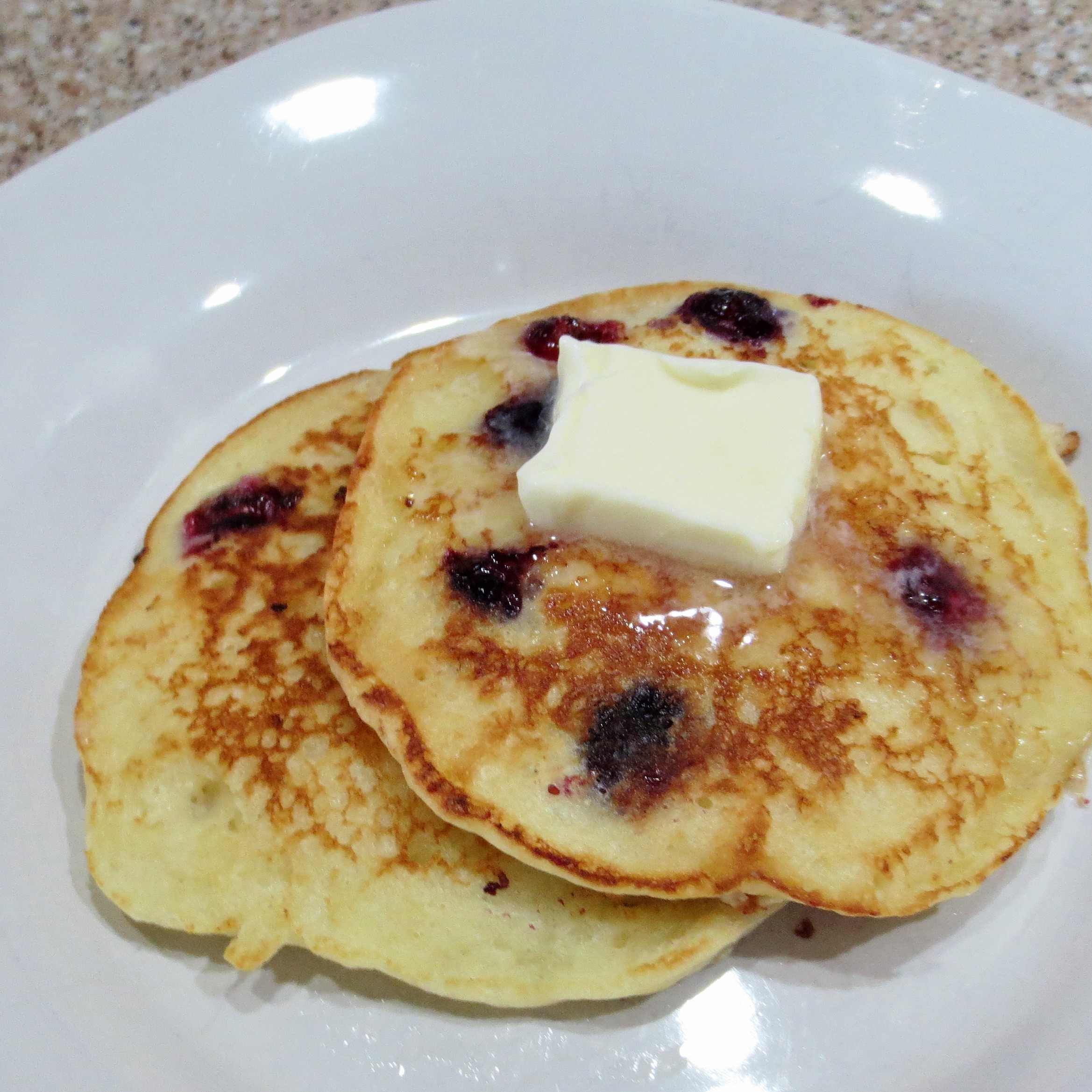 We usually keep weekday morning breakfast pretty simple, but this Friday I got the urge to make Sour Cream Pancakes with blueberries. Yummy! That night we had a re-make of last week’s Spicy Baked Shrimp. Michael had commented then that the flavor of sauce was too strong and overpowered the shrimp. He was right. Last night I cut the amount of Worcestershire sauce and lemon juice in half and the shrimp’s flavor was the star. The posted recipe reflects that change.