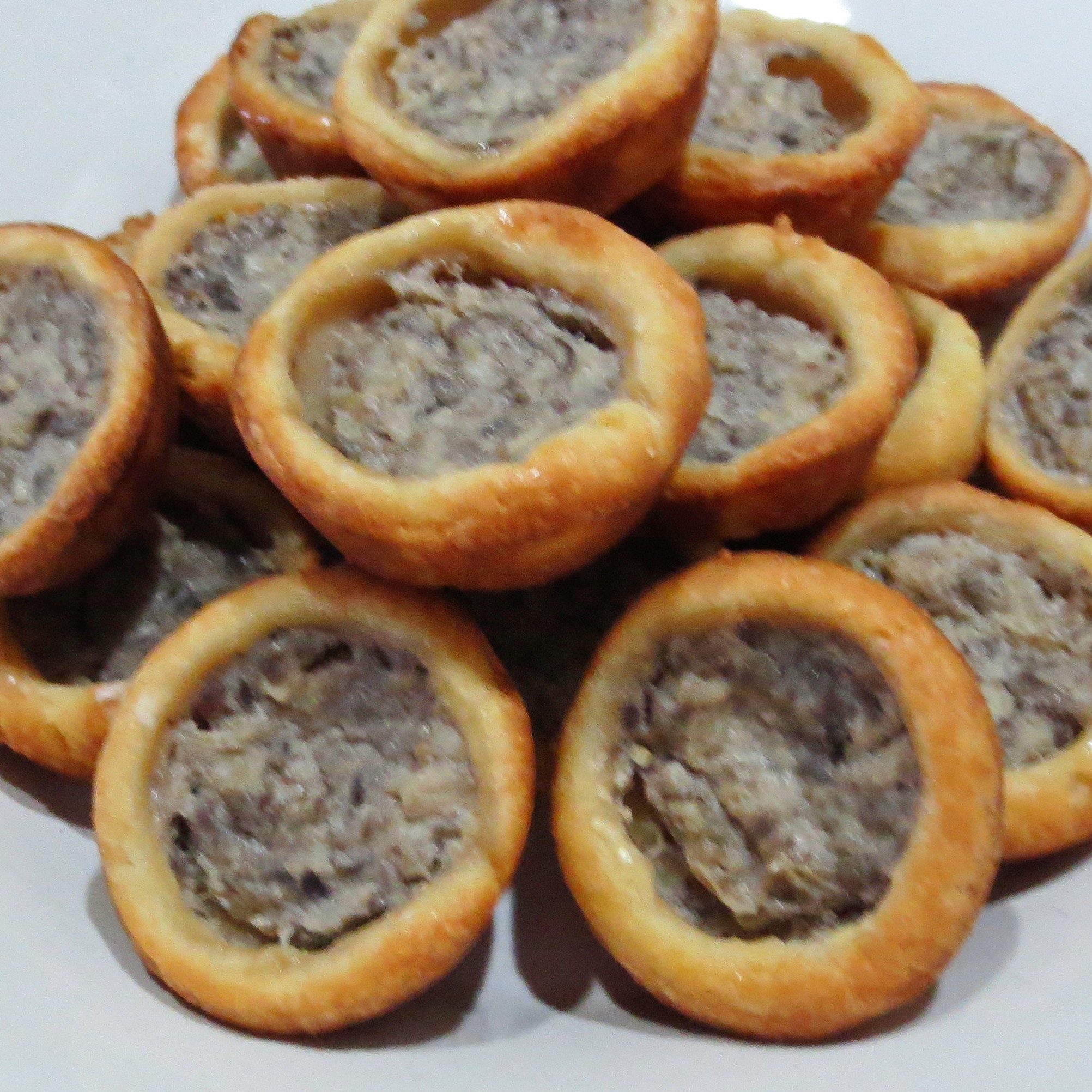 I already had my mini muffin pan out, so half the turnovers became mini mushroom tarts. Not the same! The little tarts have the mushroom taste, but aren’t nearly as appealing. I’ll save the turnovers for company and Michael and I can snack on the tarts.