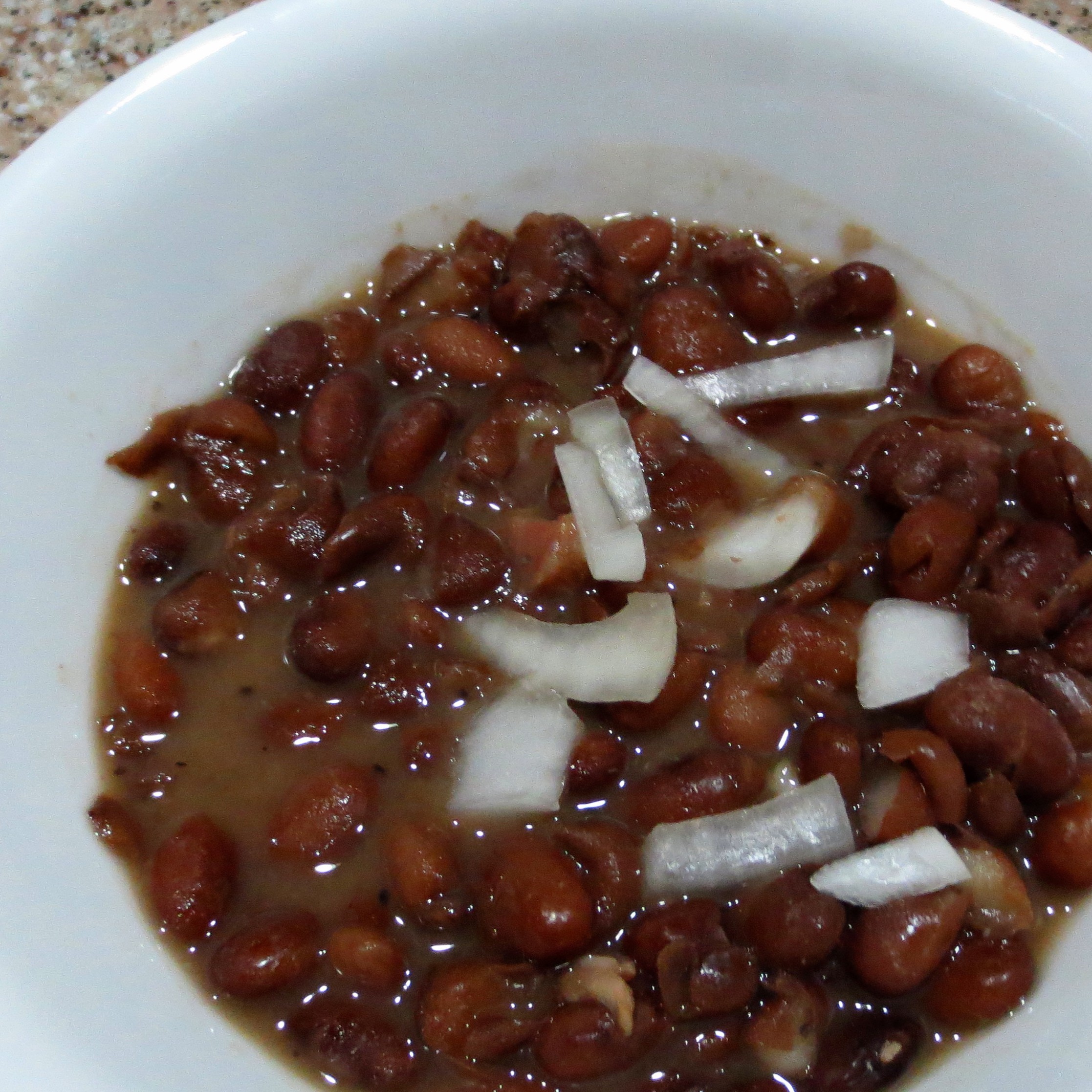Meatless Monday we went retro with an old fashioned bowl of Southern Style Pinto Beans topped with diced Vidalia onions and served with Sweet Sour Cream Cornbread on the side. I’m not a Southerner by birth, but every once in a while I do adopt the customs.