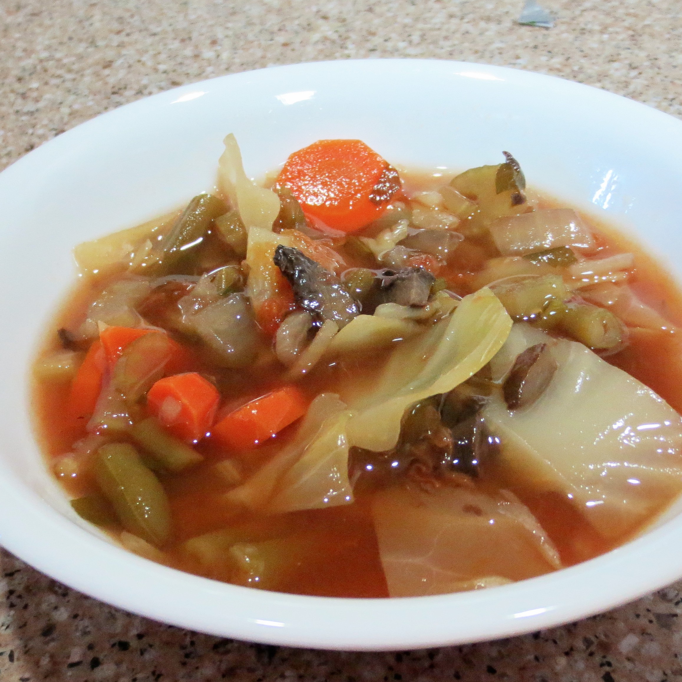 I had some extra time this week and used it to throw together a pot of Spicy Cabbage Soup. If you like vegetables, you’ll love this soup, and you’ll love the fact that you can fill up on as much as you like. Each flavorful serving has only 86 calories, but 6 grams of fiber. You can’t go wrong with that, can you?