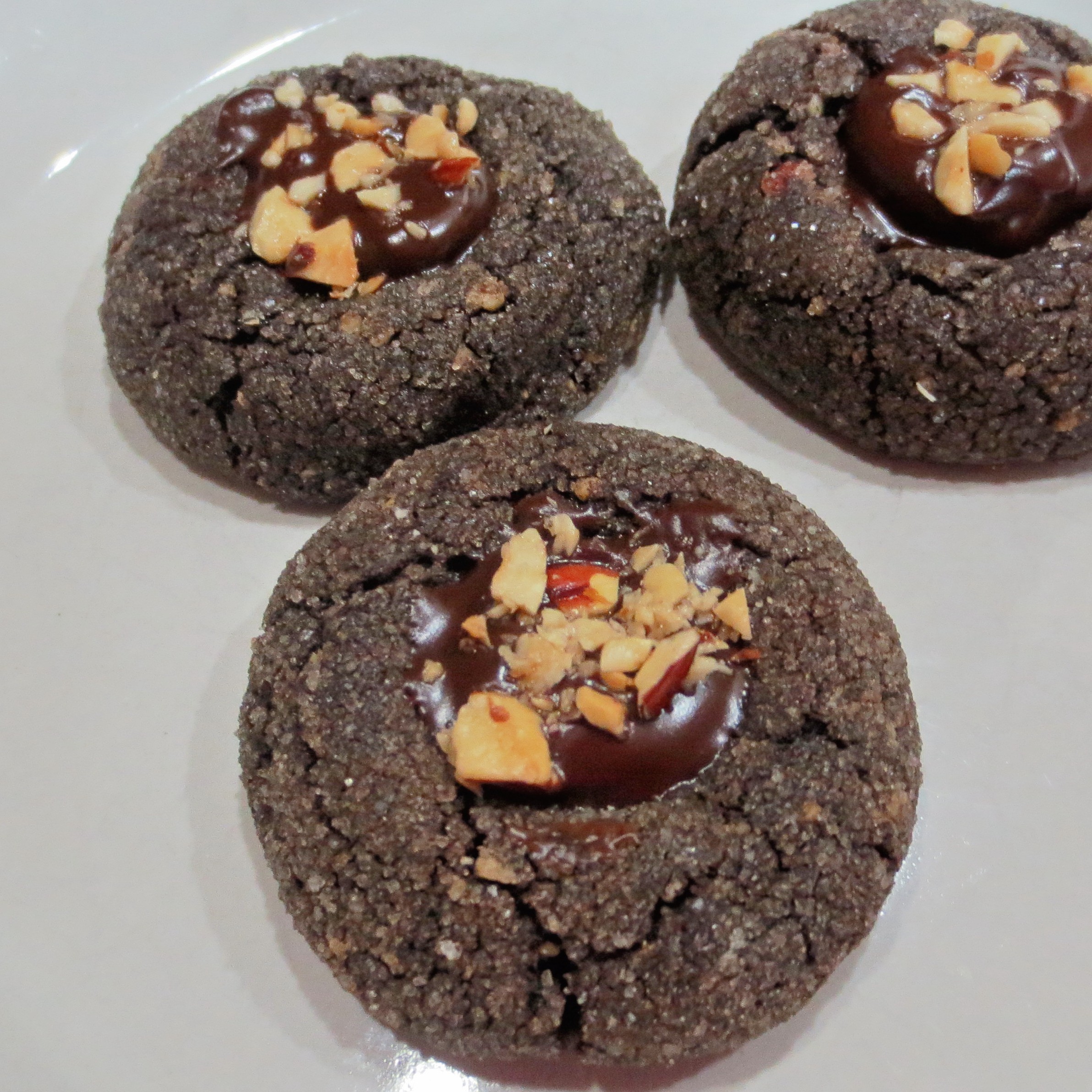 A couple of new cookies made this years plate. Dark Chocolate and Hazelnut Thumbprints are impressive, but surprisingly easy to make.