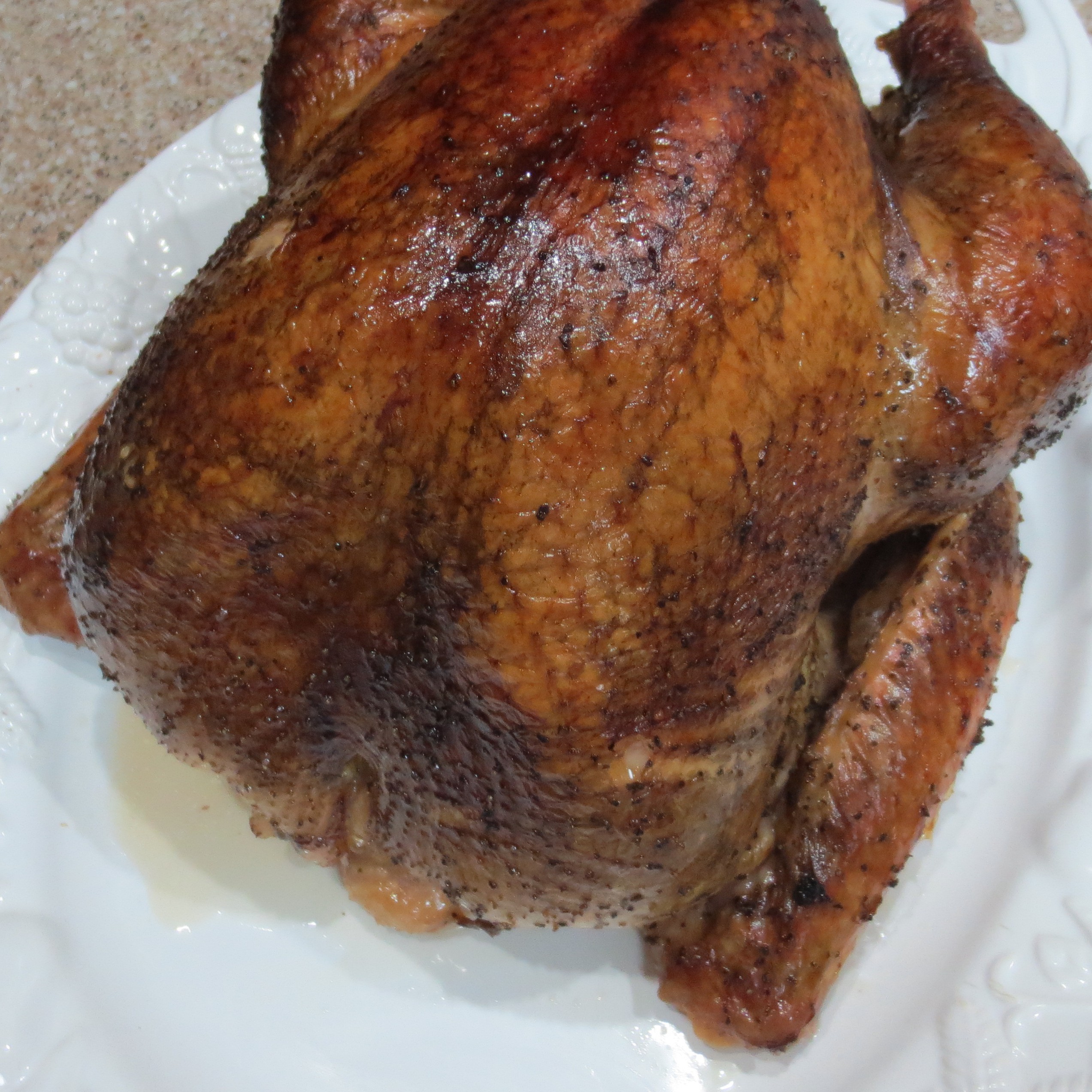 I actually started on the turkey trail a day ahead of time by preparing the Brine for my Brined Roast Turkey with Giblet Gravy . Brining your turkey is an extra step, but well worth the effort. Not only is the turkey more moist and flavorful, but you can be assured that the turkey is truly thawed all the way through. I also simmered the neck, tail, and giblets, minus the liver, for a little foundation broth. Then Sunday we had our first roast turkey of the season.