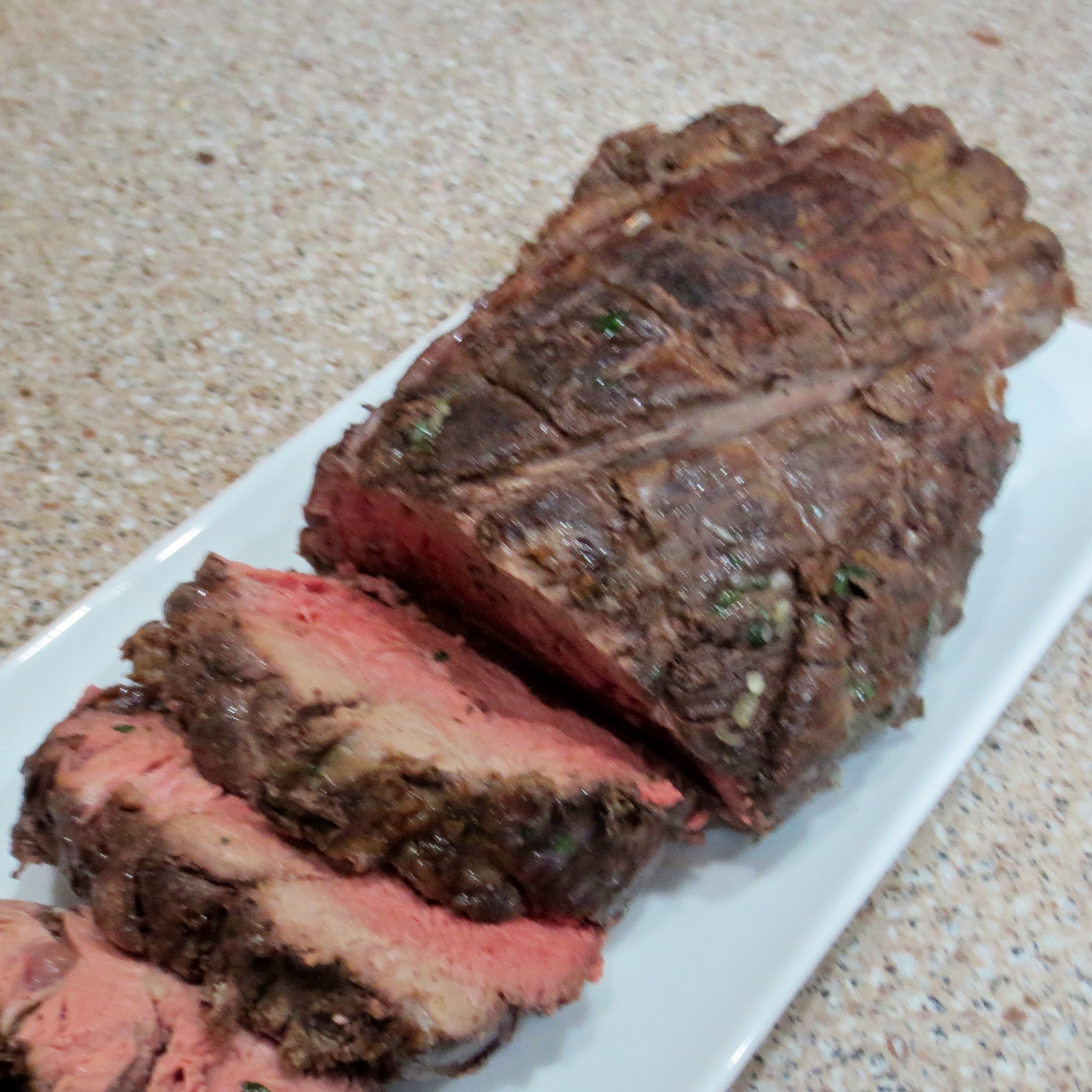 One of my holiday splurges was a very large Beef Tenderloin. I used a new cooking method suggested by Cook’s Illustrated. The roast is cooked low and slow, then seared over high heat at the end. This tenderloin turned out perfectly. I purchased the tenderloin untrimmed and did it myself. That cut of meat is too expensive to waste one bit on the fast trim job the butchers do. The trimmings went into another pot to make True Au Jus. We savored every morsel.