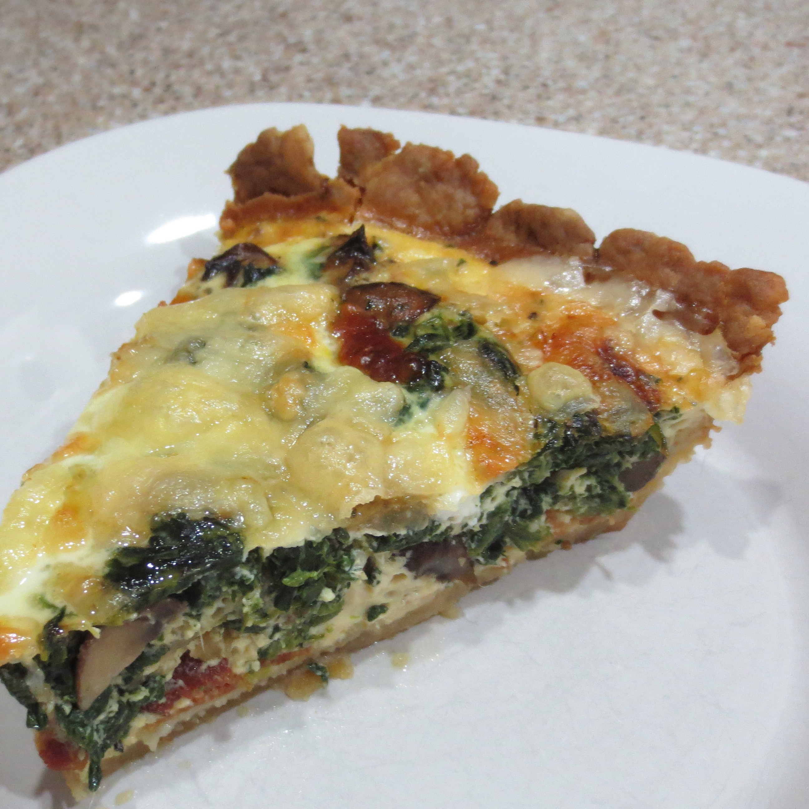 Meatless Monday didn’t happen. We went out to eat instead. Since Monday’s planned Spinach Quiche slipped to Tuesday, a little bacon slipped in too. What did I say in my last post about bacon? Oh well!