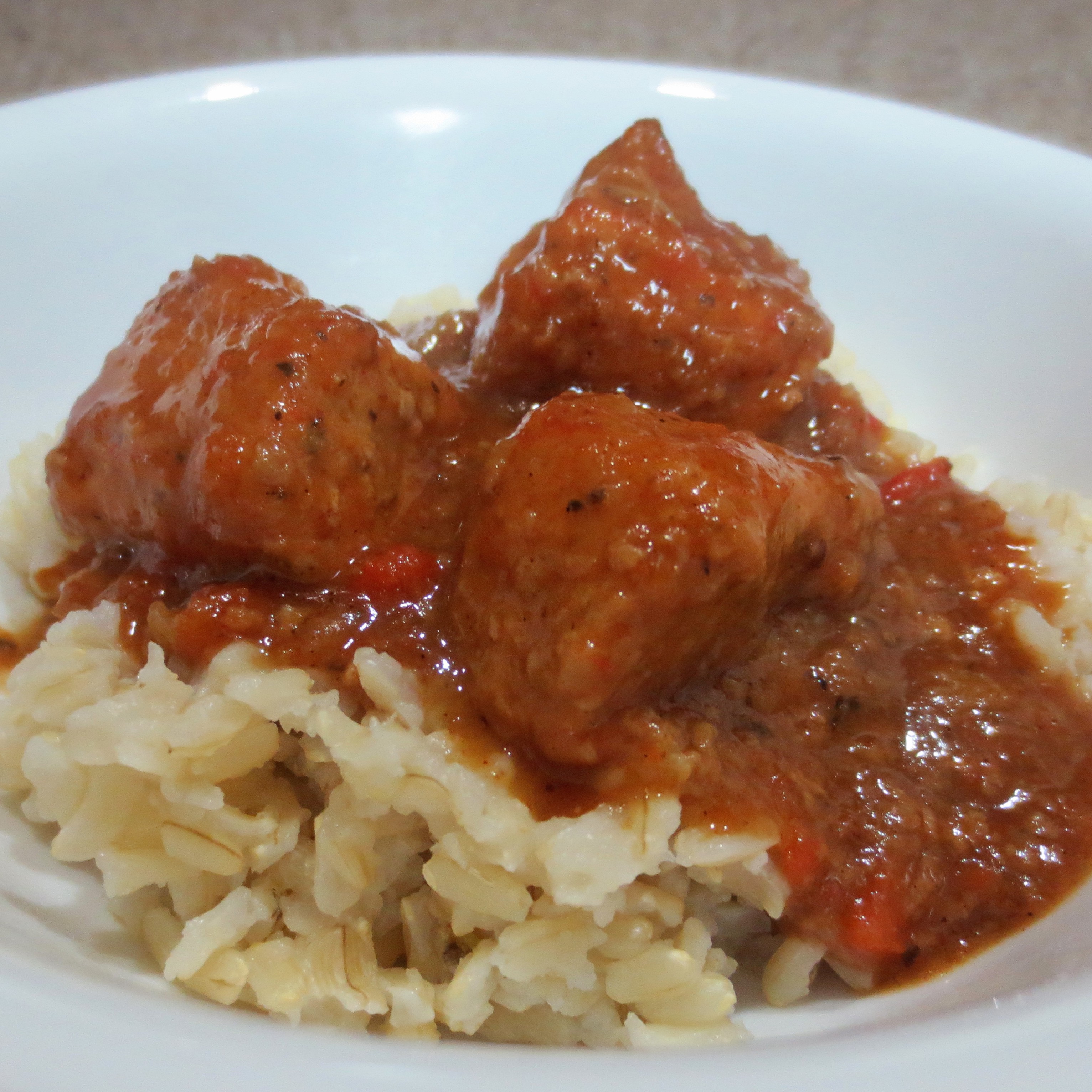 I’ve always believed in the notion that recipes are just a guideline. Make it how you like it. That was the case with my last batch of Grillades. The recipe calls for sliced pork medallions, but I had just butchered a pork loin and had some cut into cubes. They may have looked different, but the taste was the same. Yummy! Brown rice served as a base to soak up all that wonderful sauce.