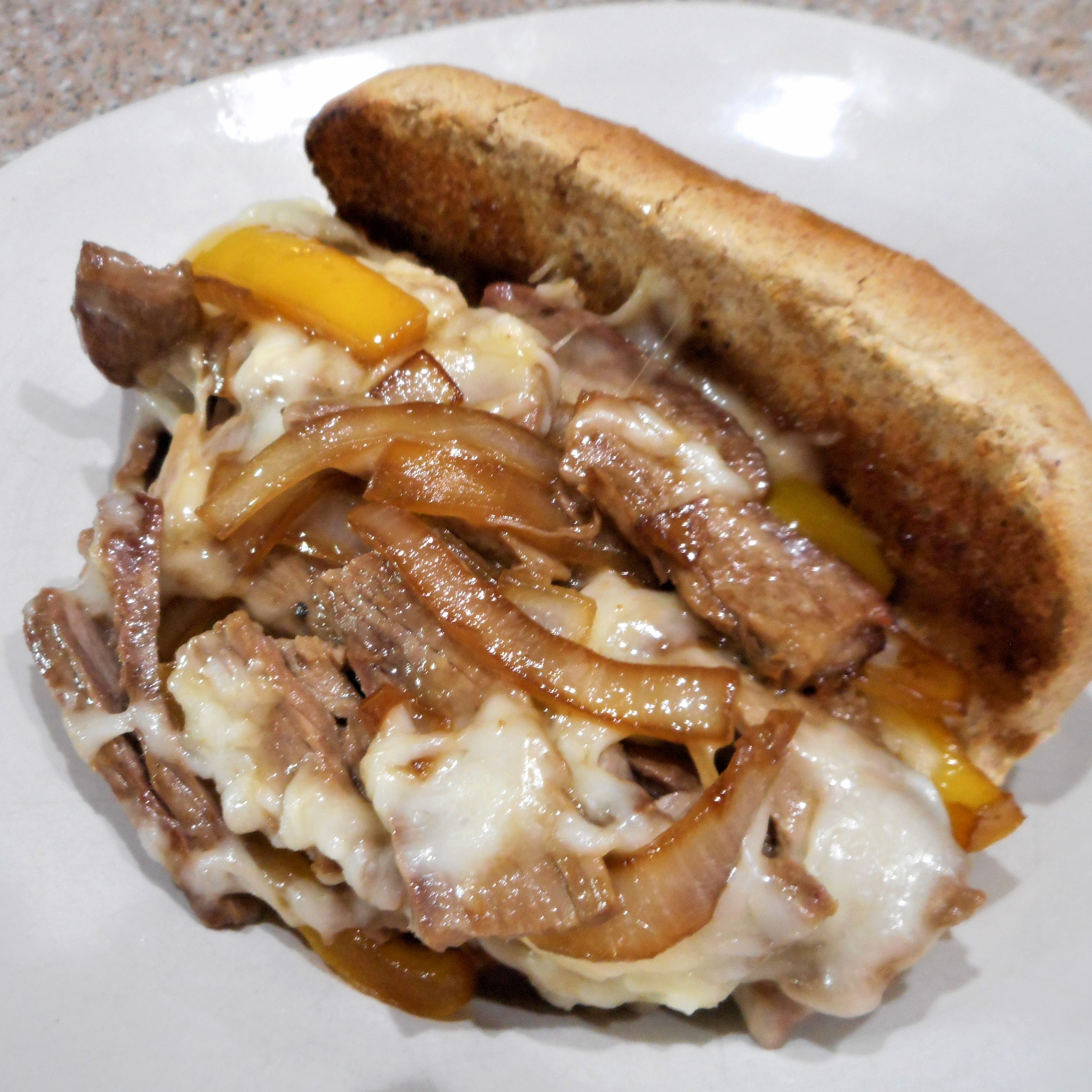 4. Take off heat and sprinkle cheese over top. Let sit until melted and then spoon onto rolls.
