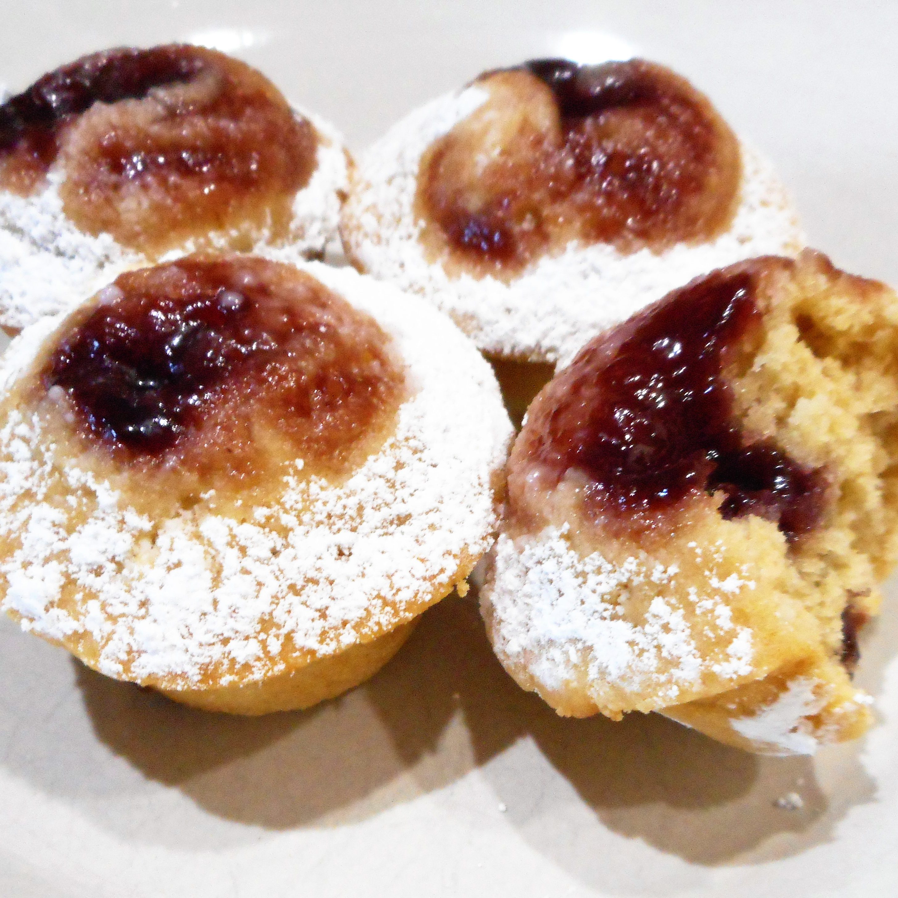 5. Press 1/2 teaspoon of jam into top of each muffin. Gently fold batter over most of preserves.